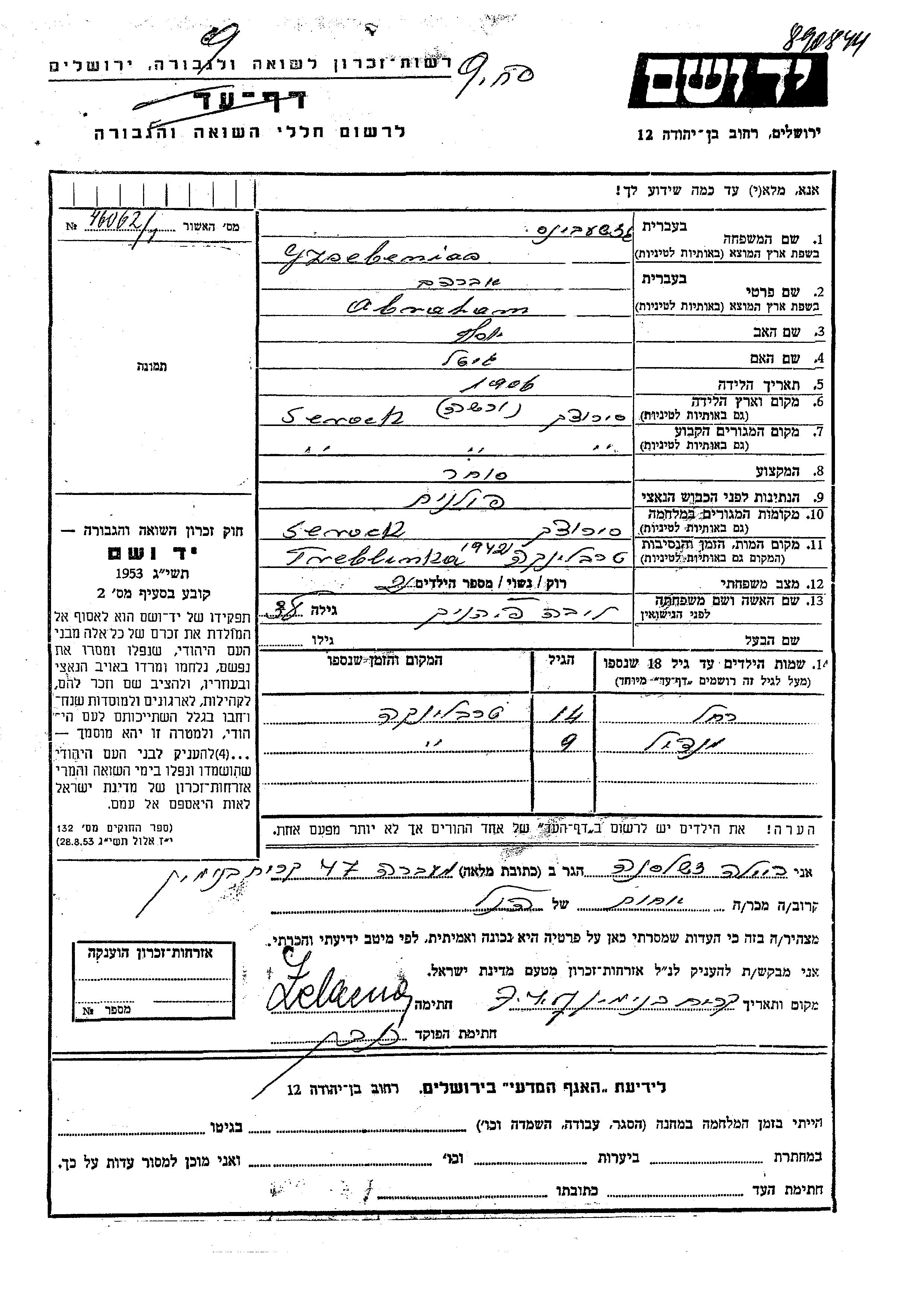 Яд Вашем - Листы свидетельских показаний Мемориального фонда