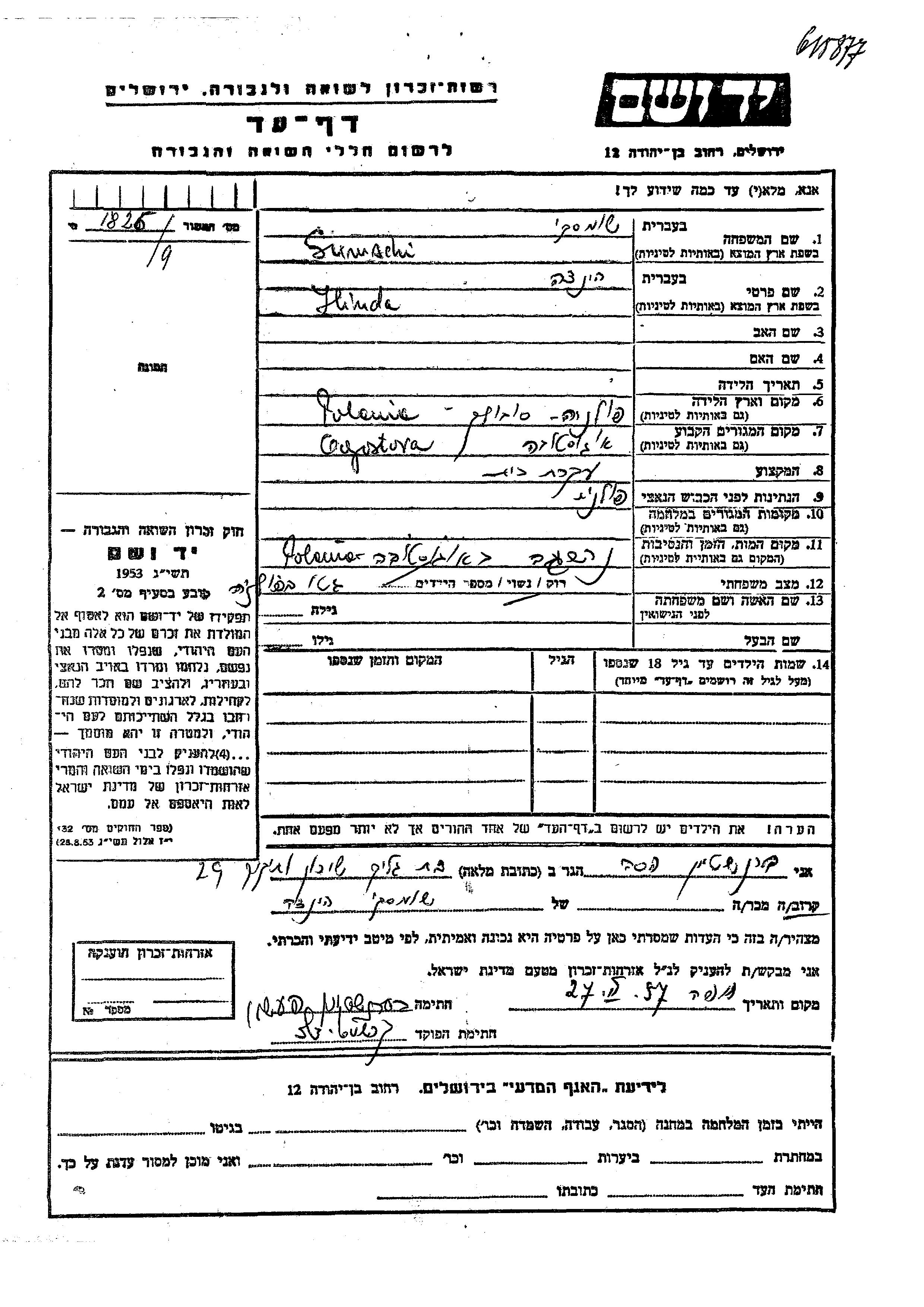 Яд Вашем - Листы свидетельских показаний Мемориального фонда