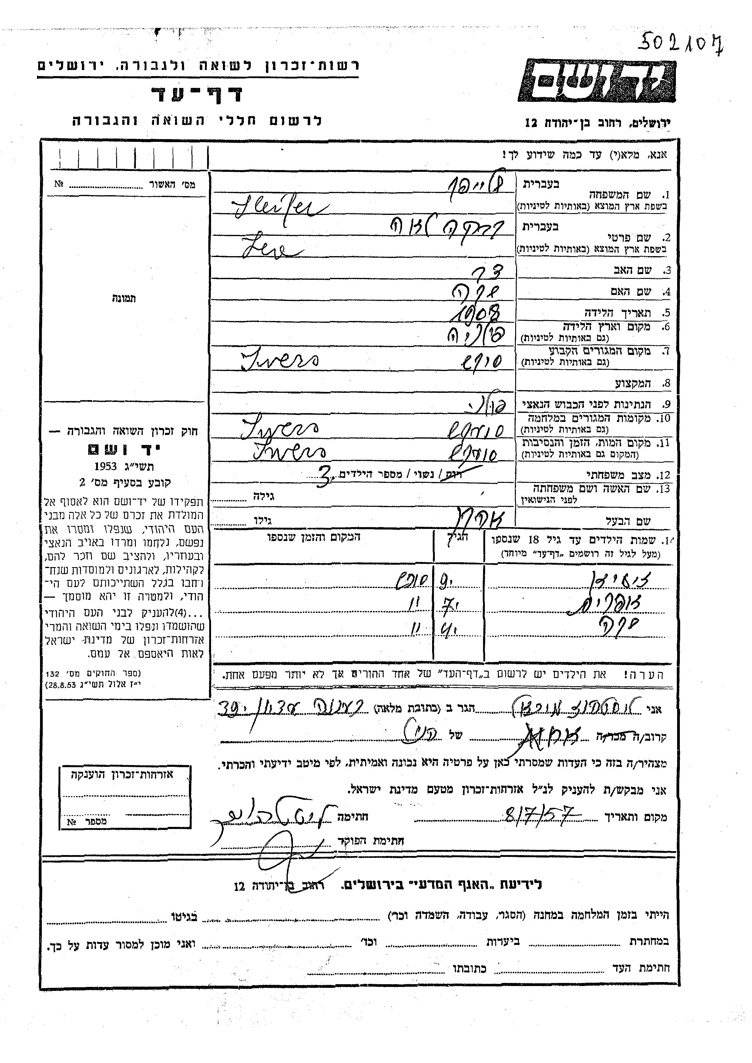 Яд Вашем - Листы свидетельских показаний Мемориального фонда