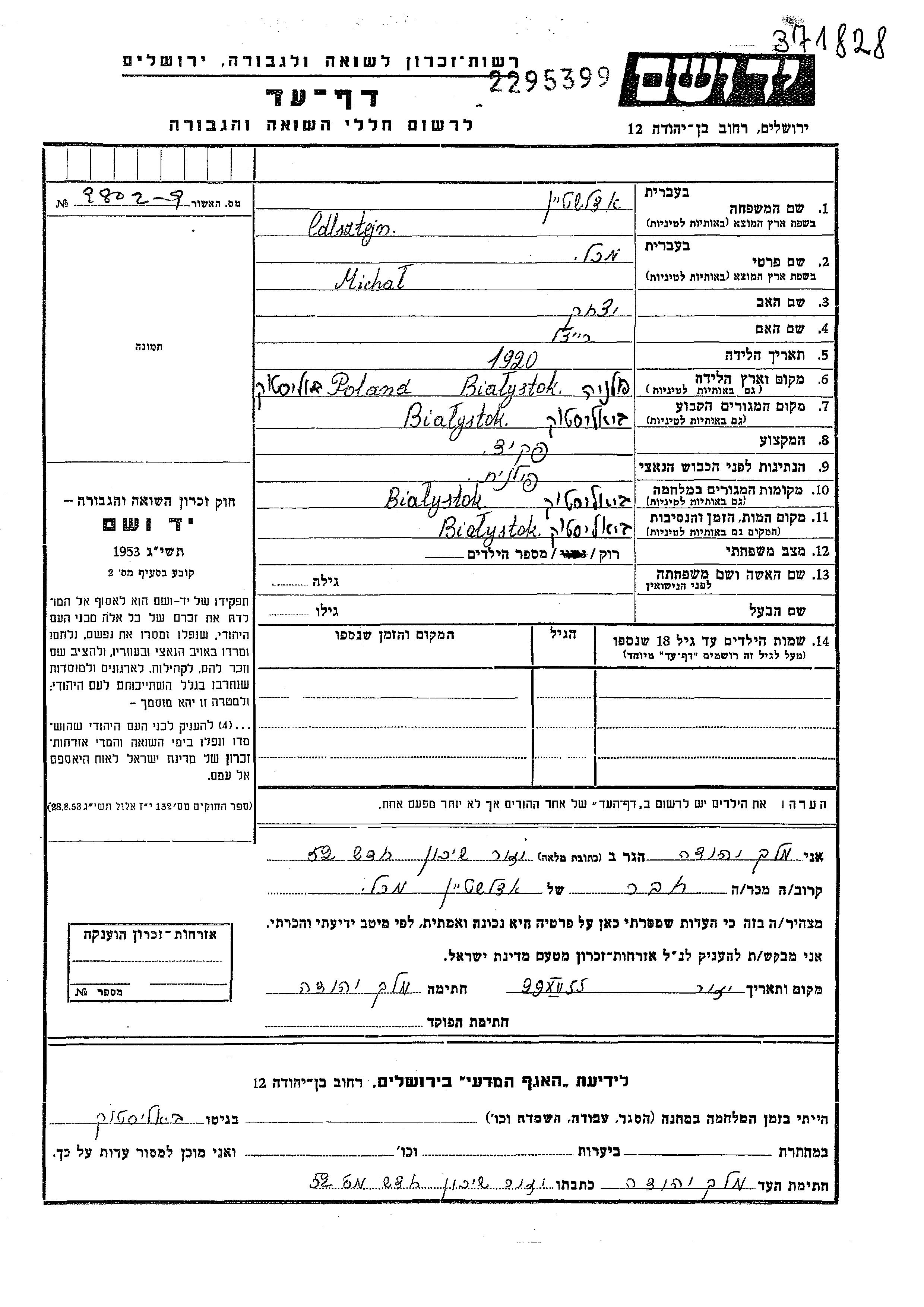 Эдльштейн | Михаль | 1920 | Белосток, Польша | Лист свидетельских показаний |