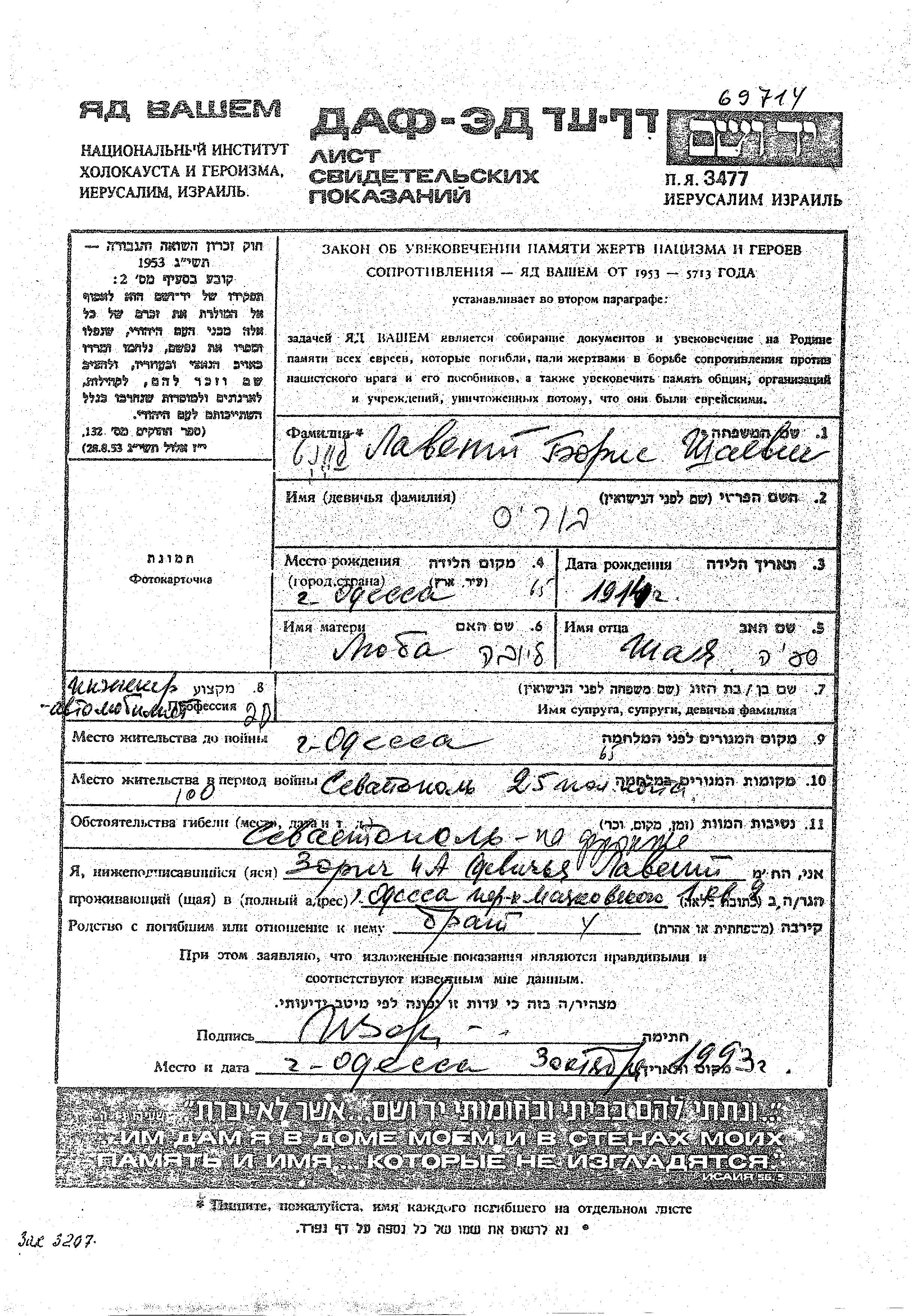 Яд Вашем - Листы свидетельских показаний Мемориального фонда