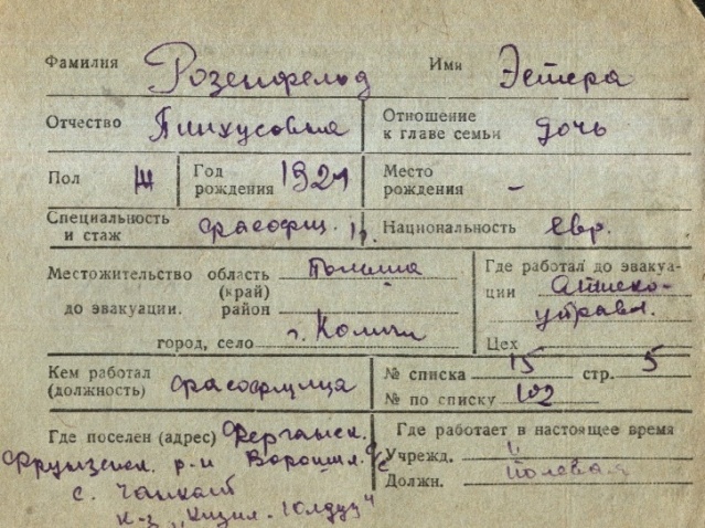 Розенфельд Эстера 1924 Калиш, Польша Список эвакуированных