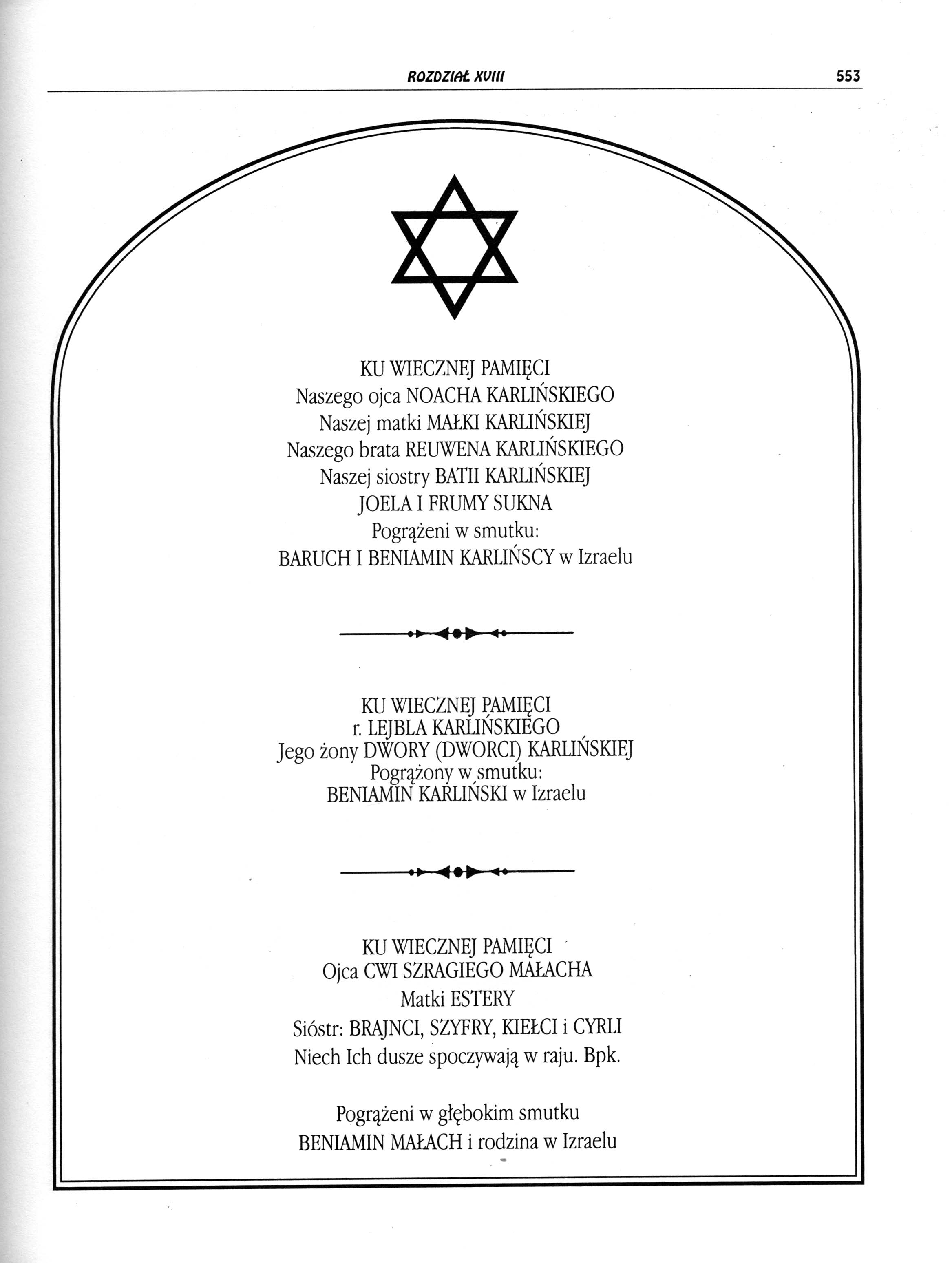 Карлински Батья Остроленка, Польша Список уничтоженных евреев из Книги Памяти