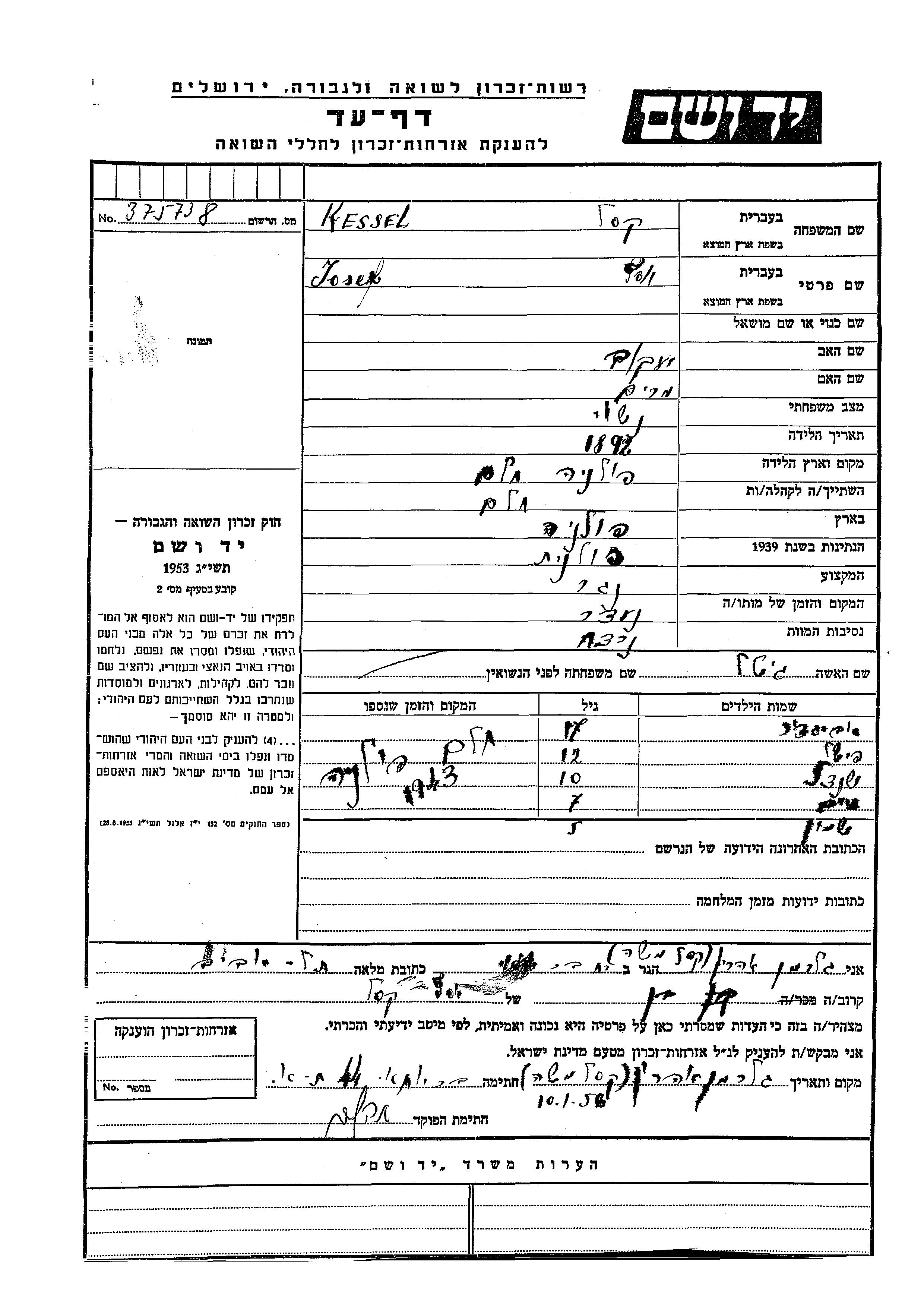 Яд Вашем - Листы свидетельских показаний Мемориального фонда