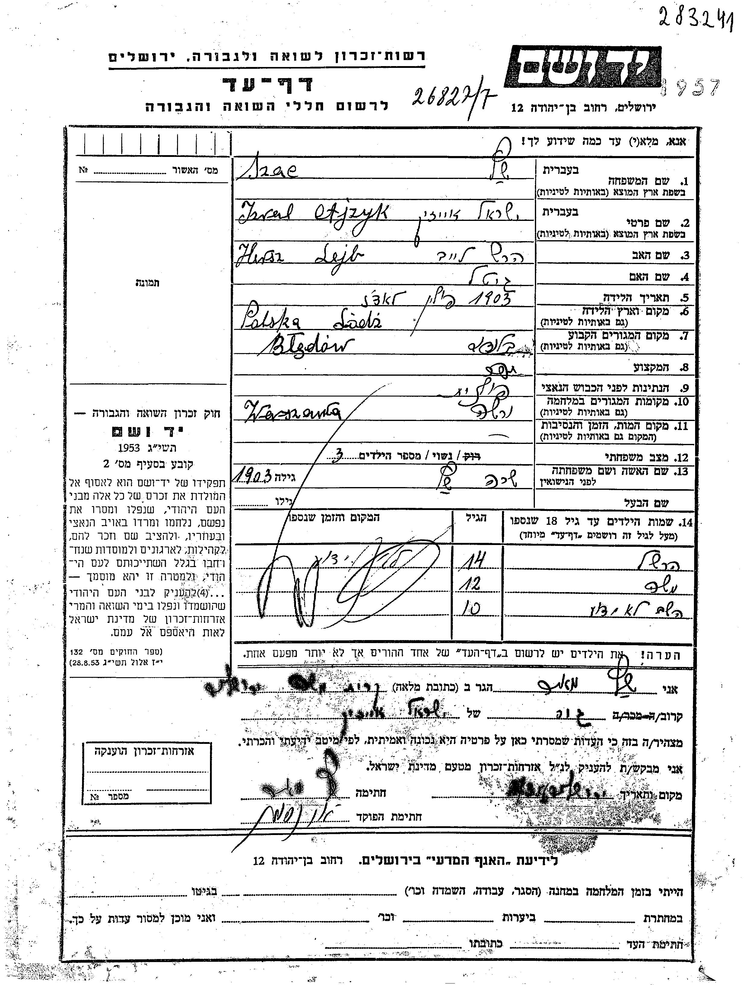 Шац | Гершель | Бледов, Польша | Лист свидетельских показаний | |