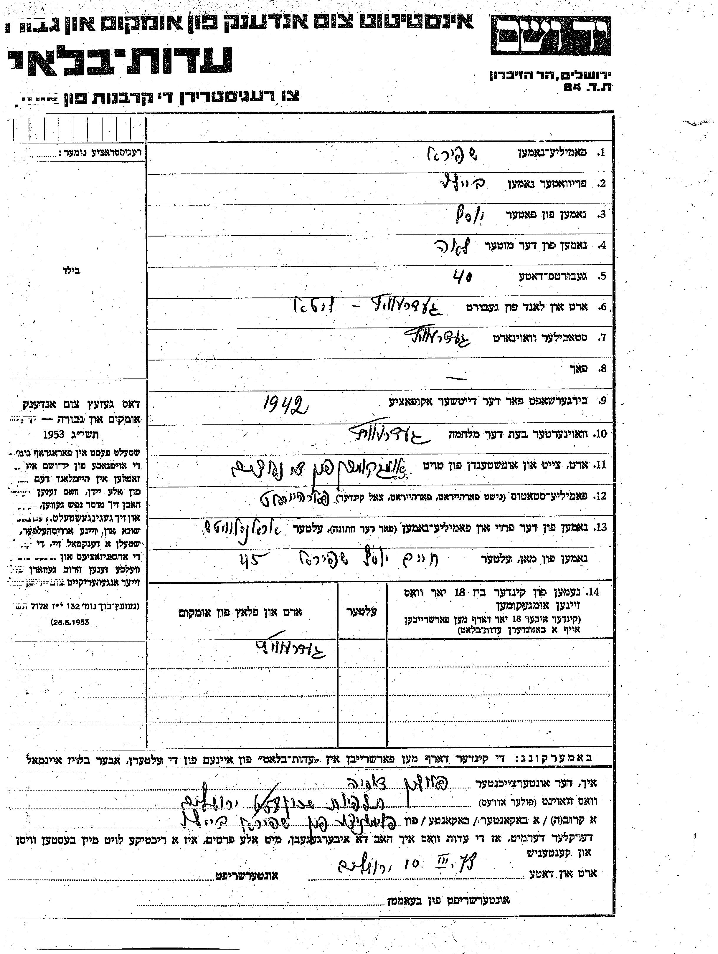 Яд Вашем - Листы свидетельских показаний Мемориального фонда