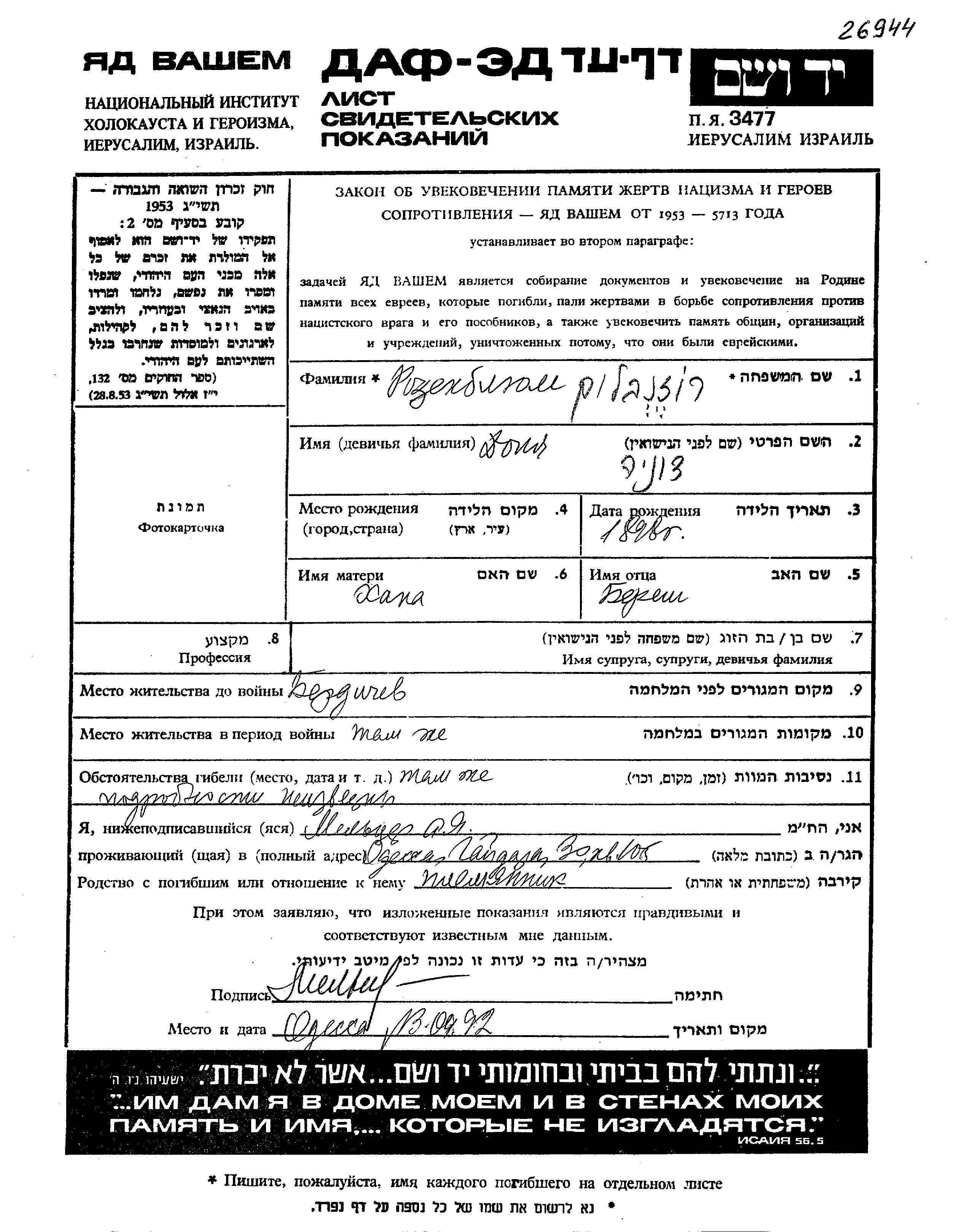 Поиск подателя Листа свидетельских показаний. Поиск по любому имени, включая уменьшительное или прозвище