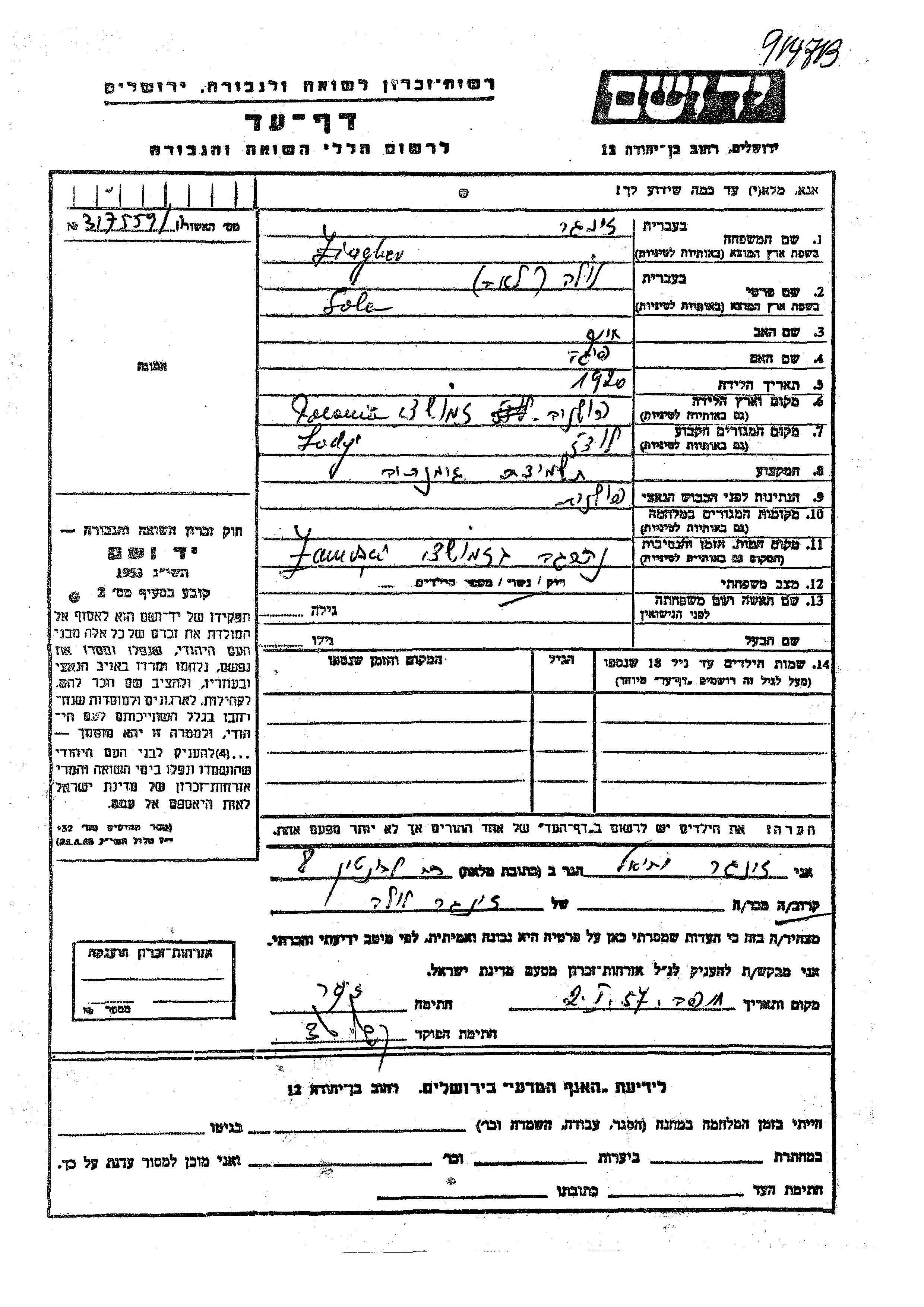 Яд Вашем - Листы свидетельских показаний Мемориального фонда