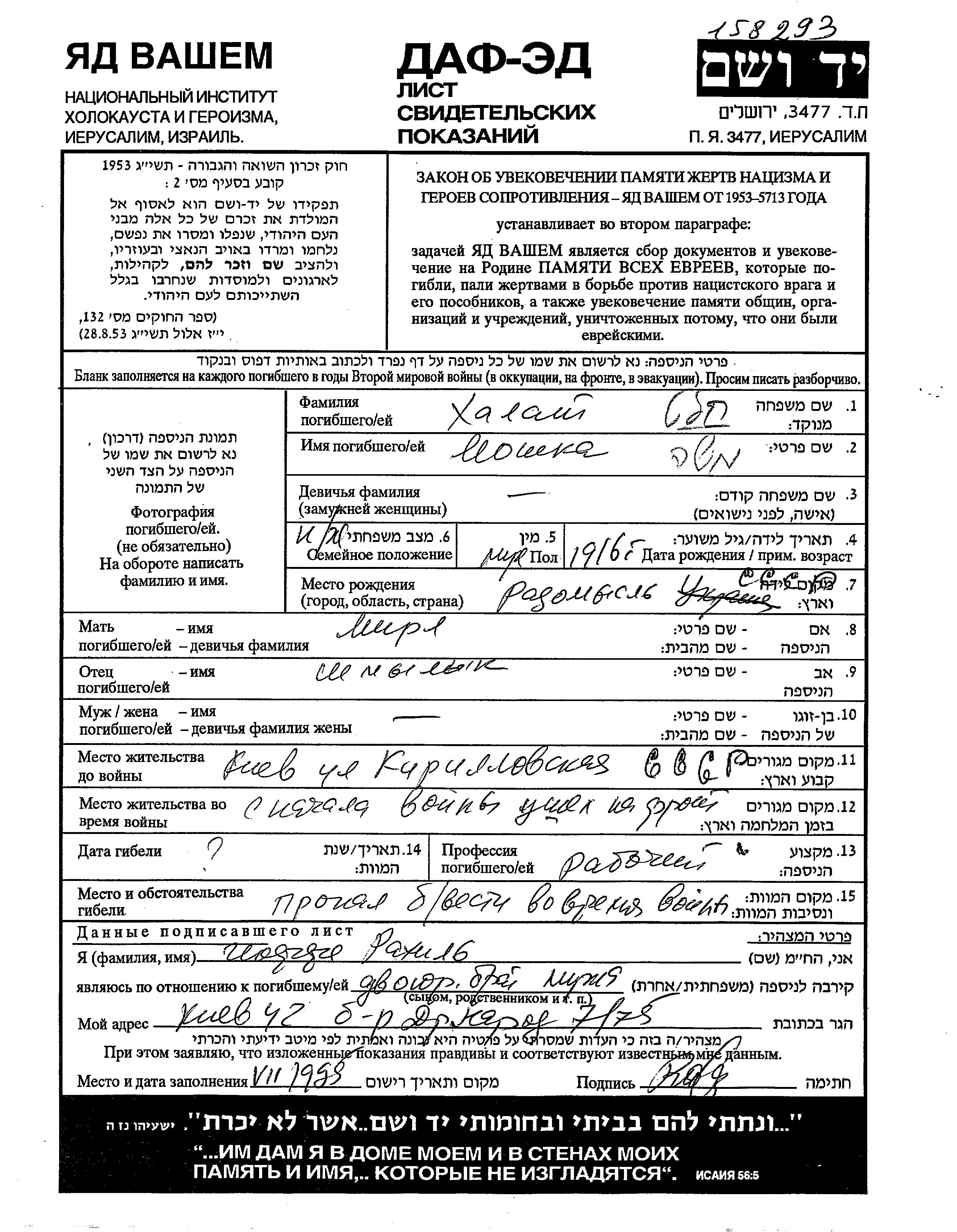 Яд Вашем - Листы свидетельских показаний Мемориального фонда