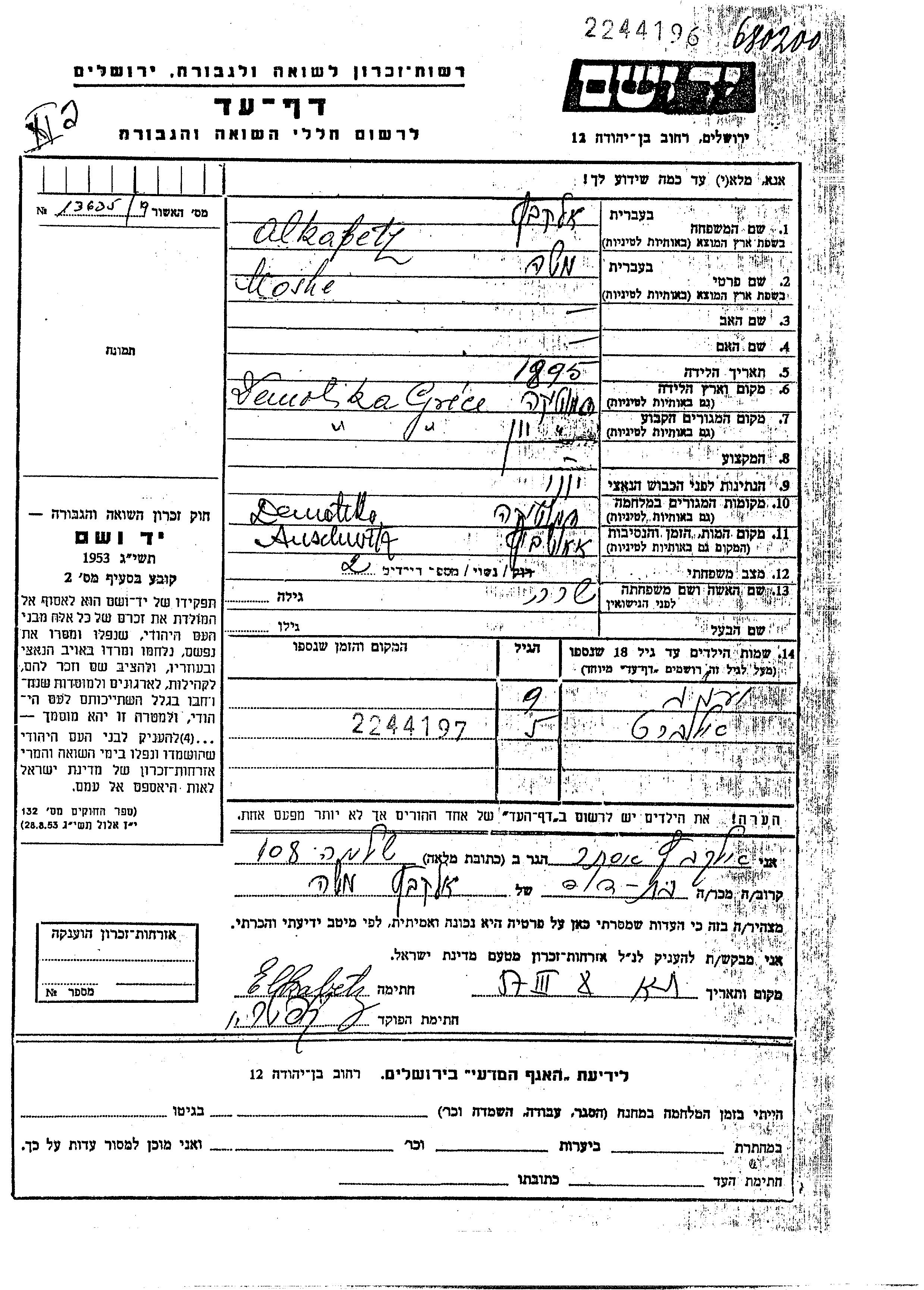 Алькабец | Яков | Дидимотихон, Греция | Лист свидетельских показаний | |