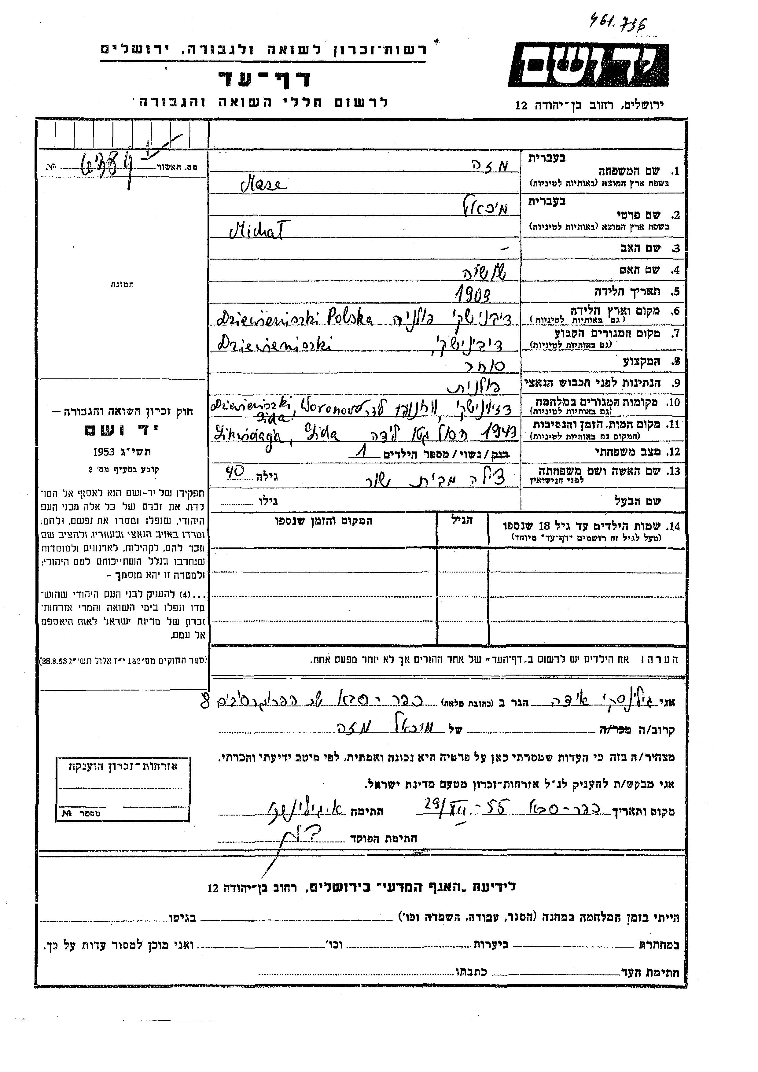 Яд Вашем - Листы свидетельских показаний Мемориального фонда
