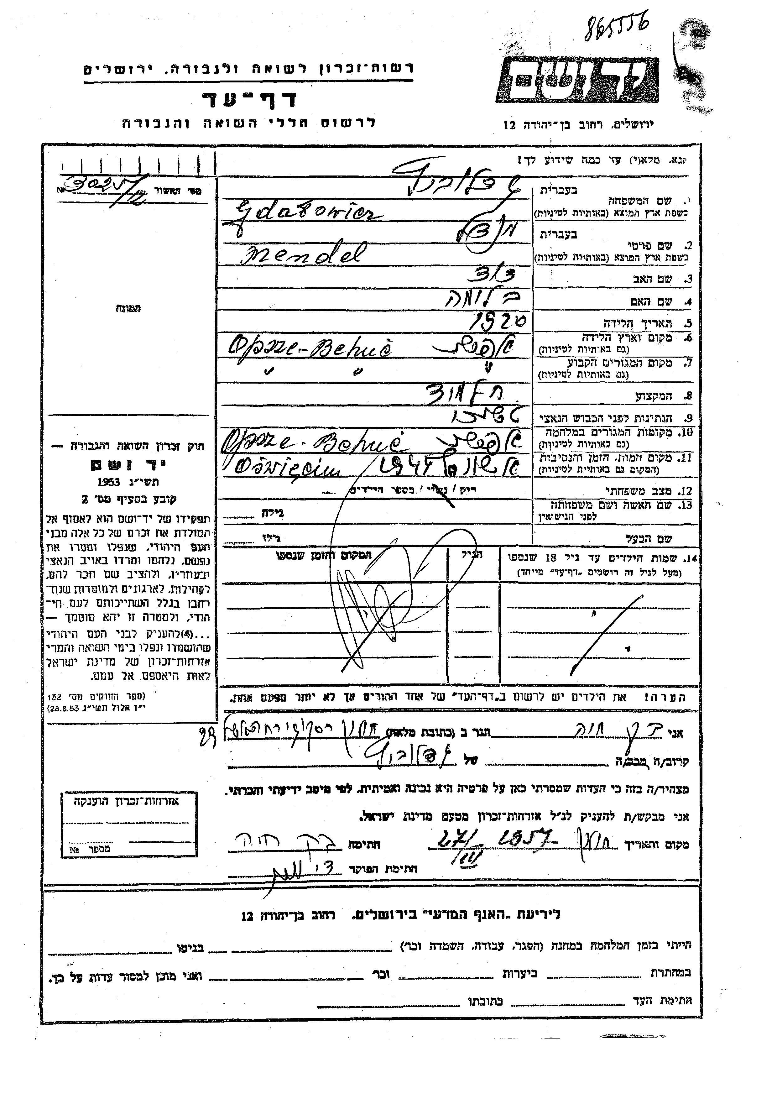 Яд Вашем - Листы свидетельских показаний Мемориального фонда