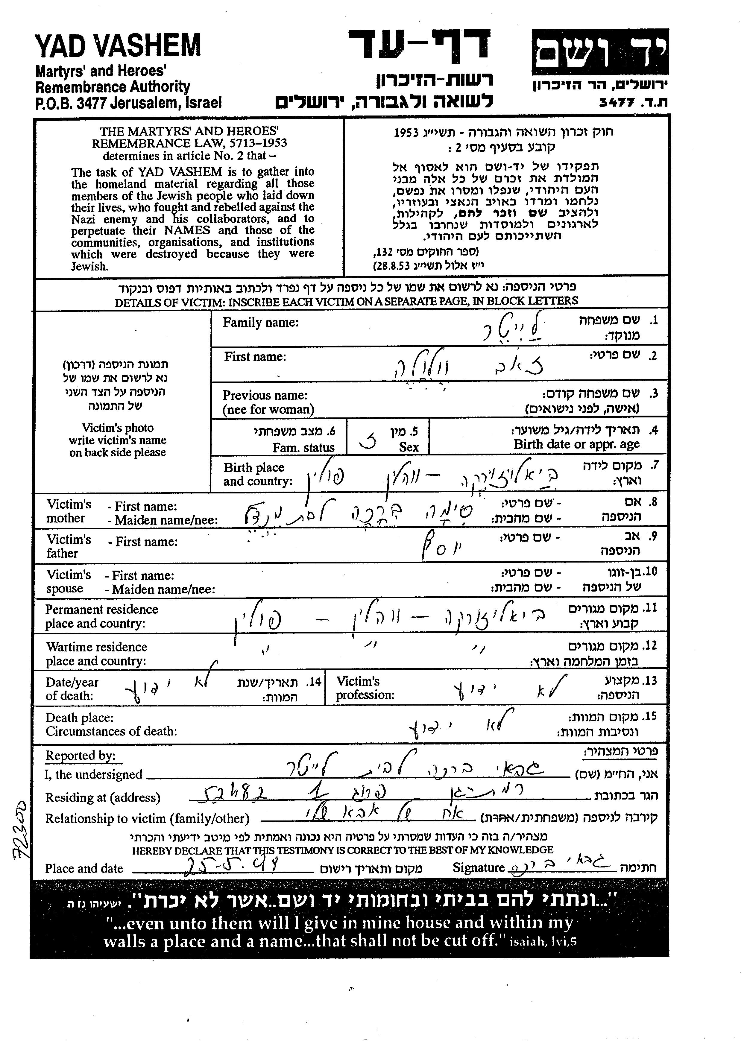 Яд Вашем - Листы свидетельских показаний Мемориального фонда