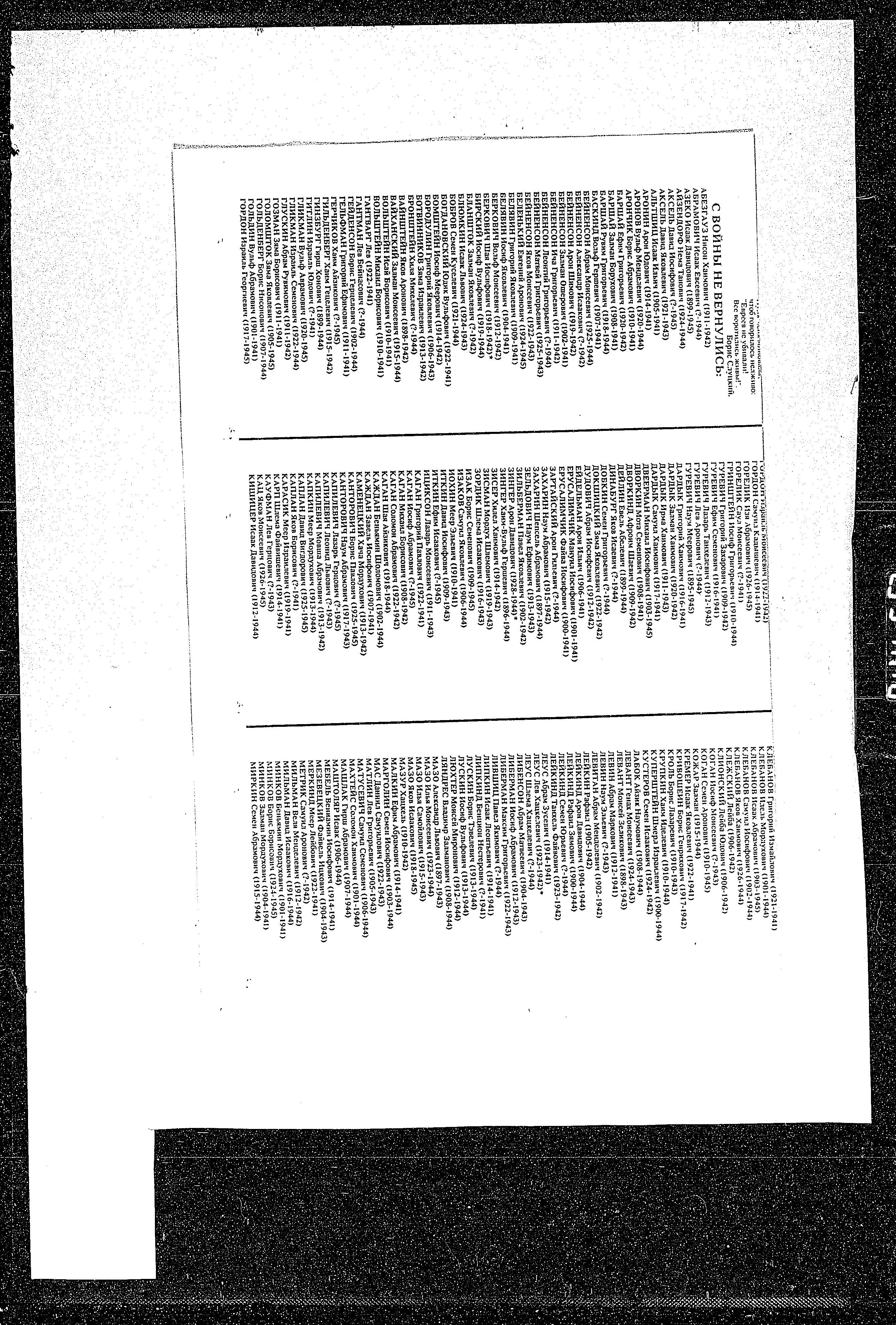 Минков Залман 1904 Борисов, Белоруссия (СССР) Список преследуемых / пострадавших лиц