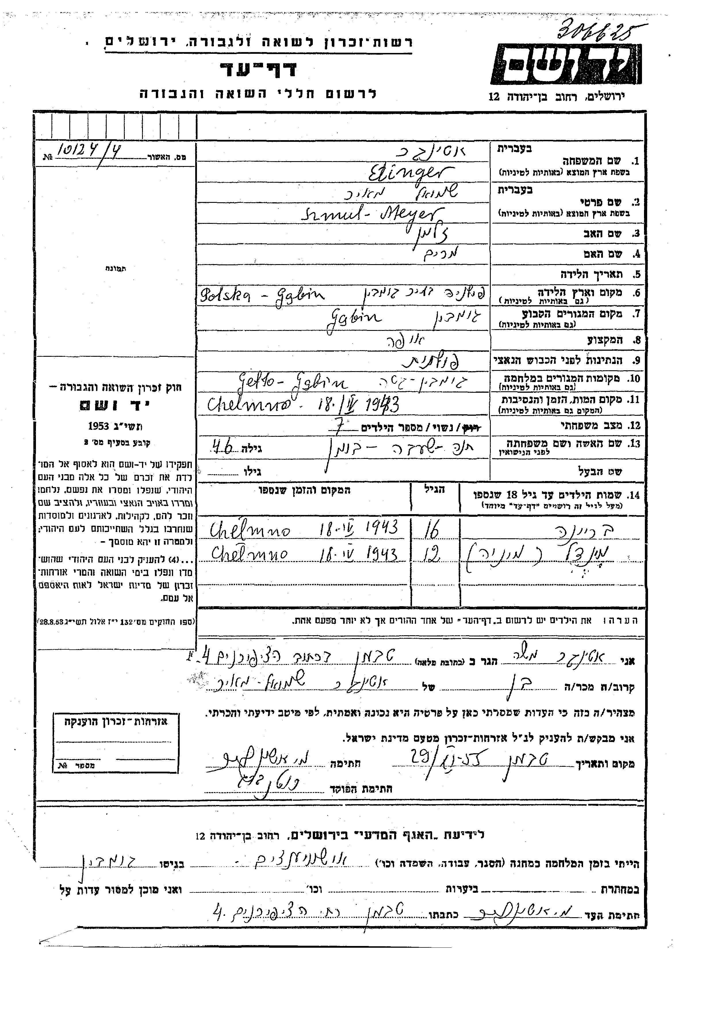 Яд Вашем - Листы свидетельских показаний Мемориального фонда