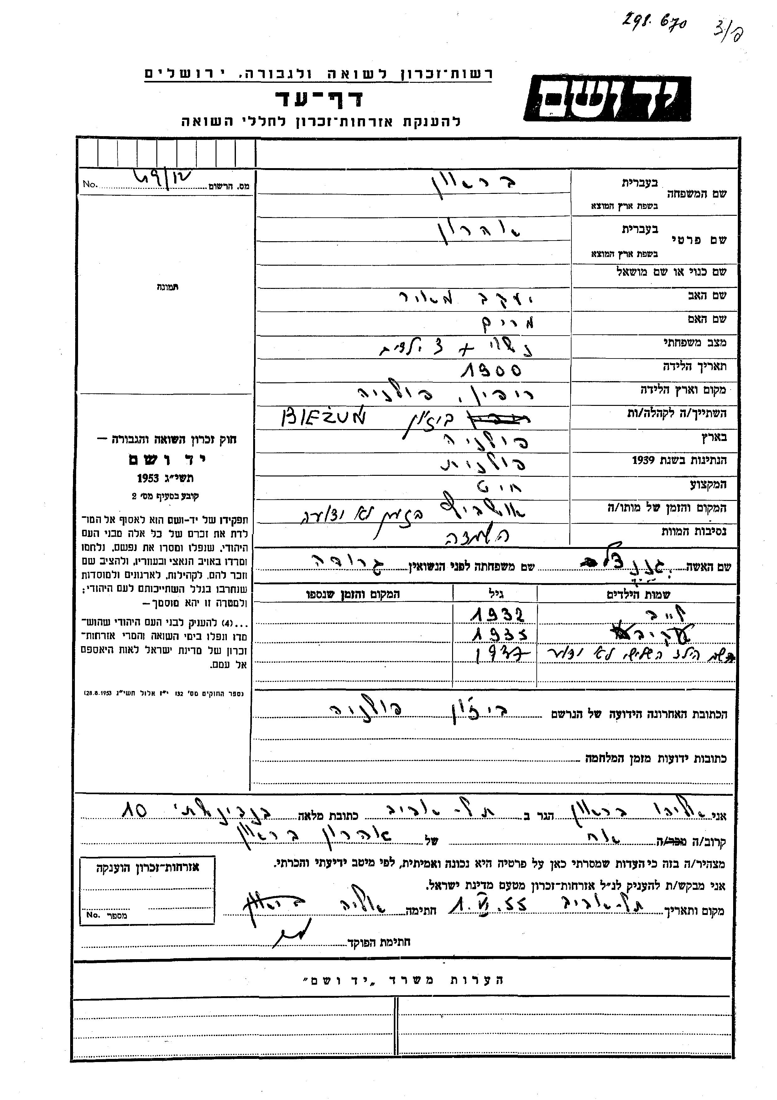 Яд Вашем - Листы свидетельских показаний Мемориального фонда