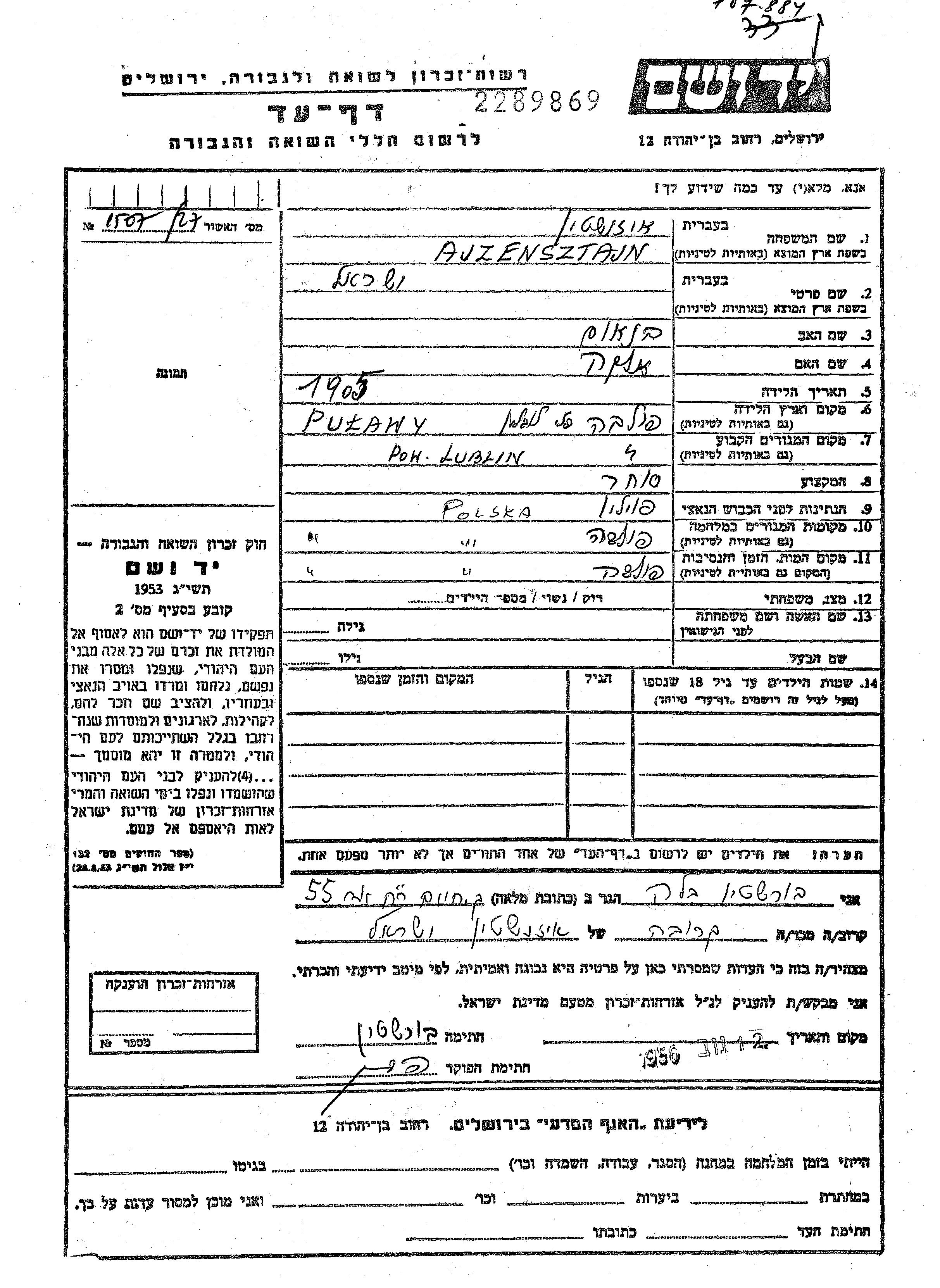 Айзенштайн Исраэль Пулавы, Польша Лист свидетельских показаний