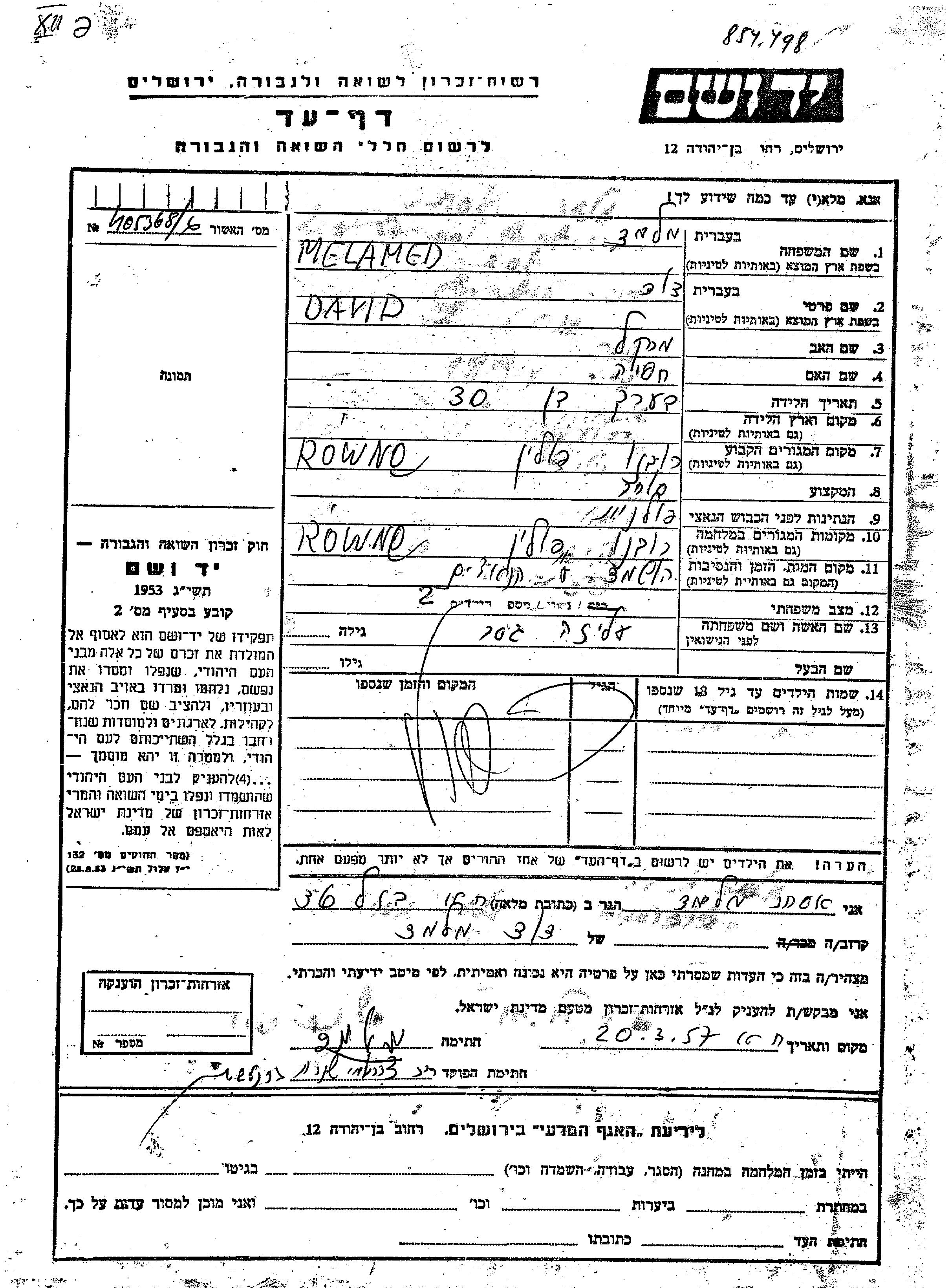 Давид Меламед, место рождения: Ровно, Польша. Торговец / торговка. Место жительства до войны: Ровно, Польша.