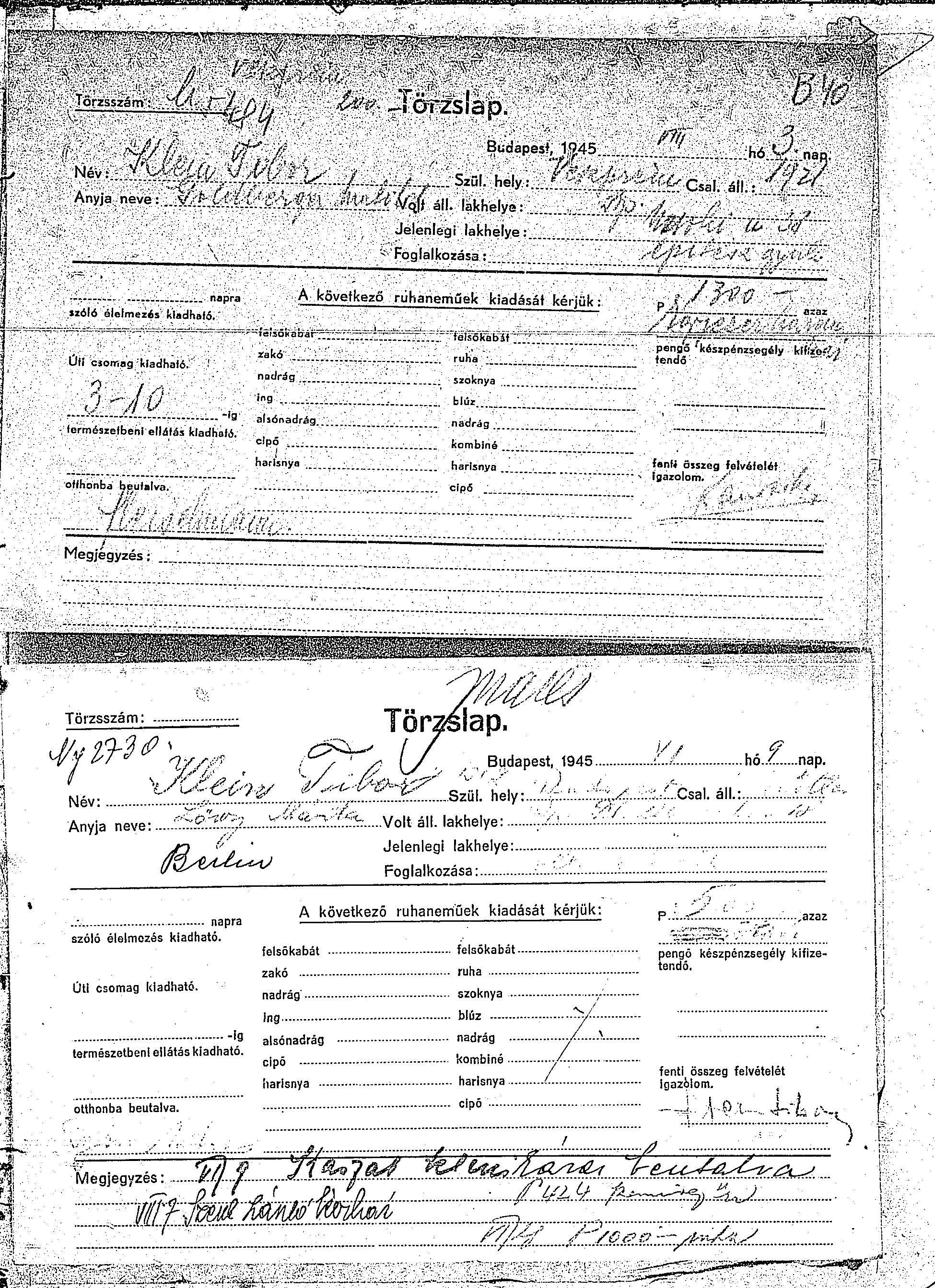 Тибор Клейн, место рождения: Веспрем, Венгрия. Архитектор. Место жительства до войны: Будапешт, Венгрия.