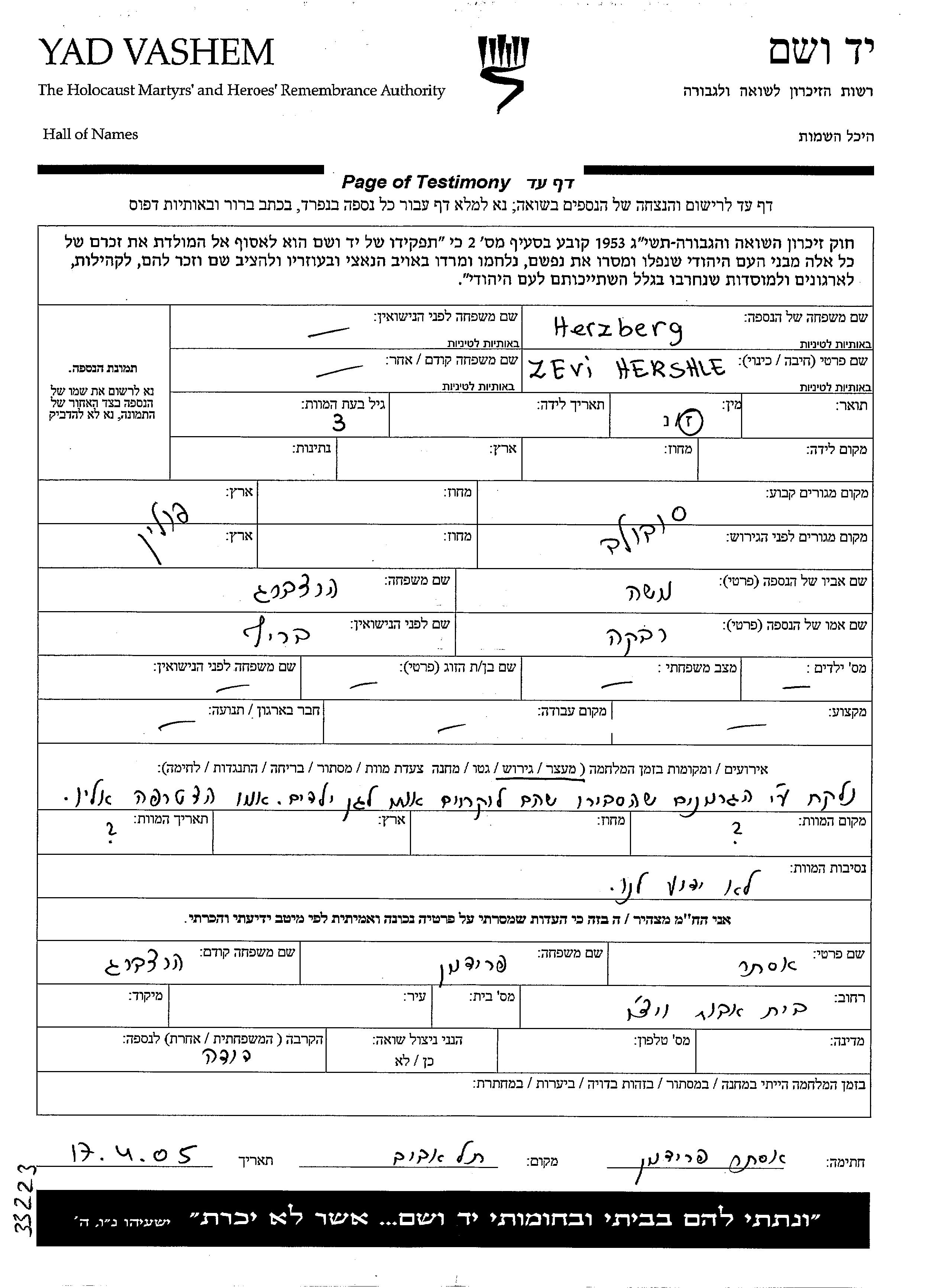 Херцберг | Цви | Соболев, Польша | Лист свидетельских показаний |