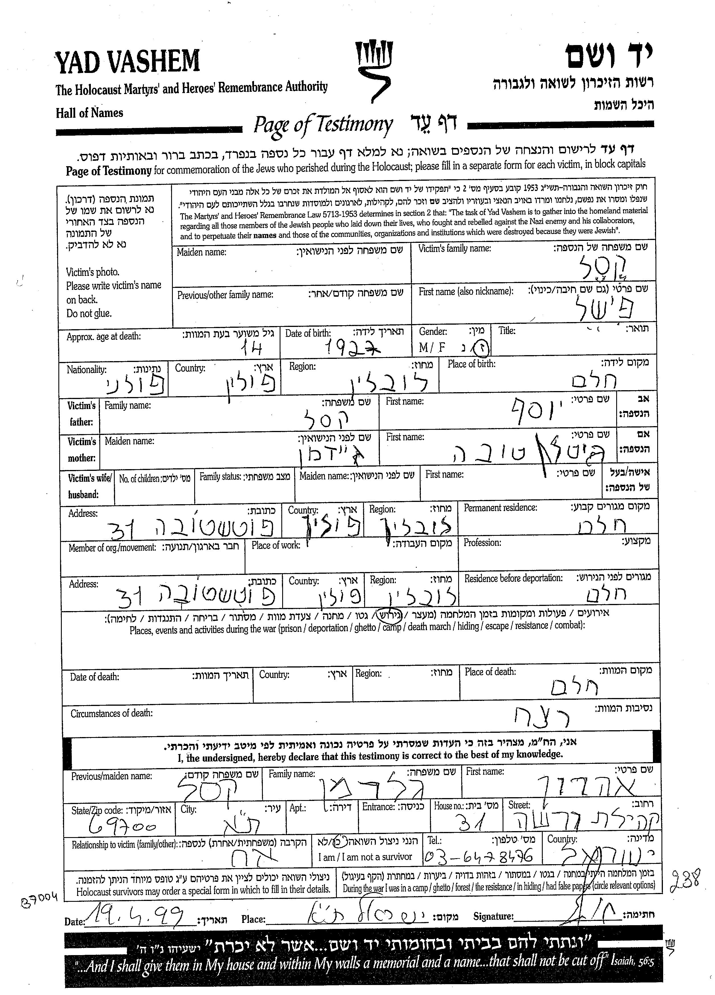 Поиск подателя Листа свидетельских показаний. Поиск по любому имени, включая уменьшительное или прозвище