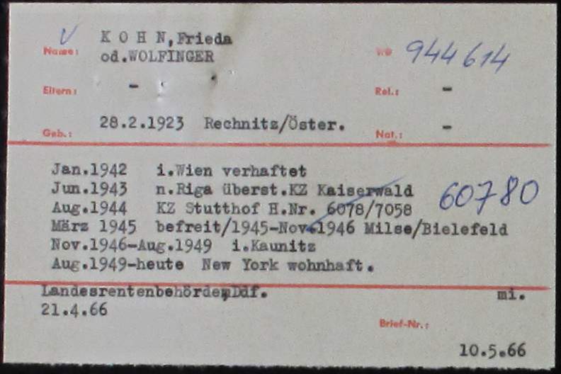 ITS card file: Frieda Kohn Wolfinger