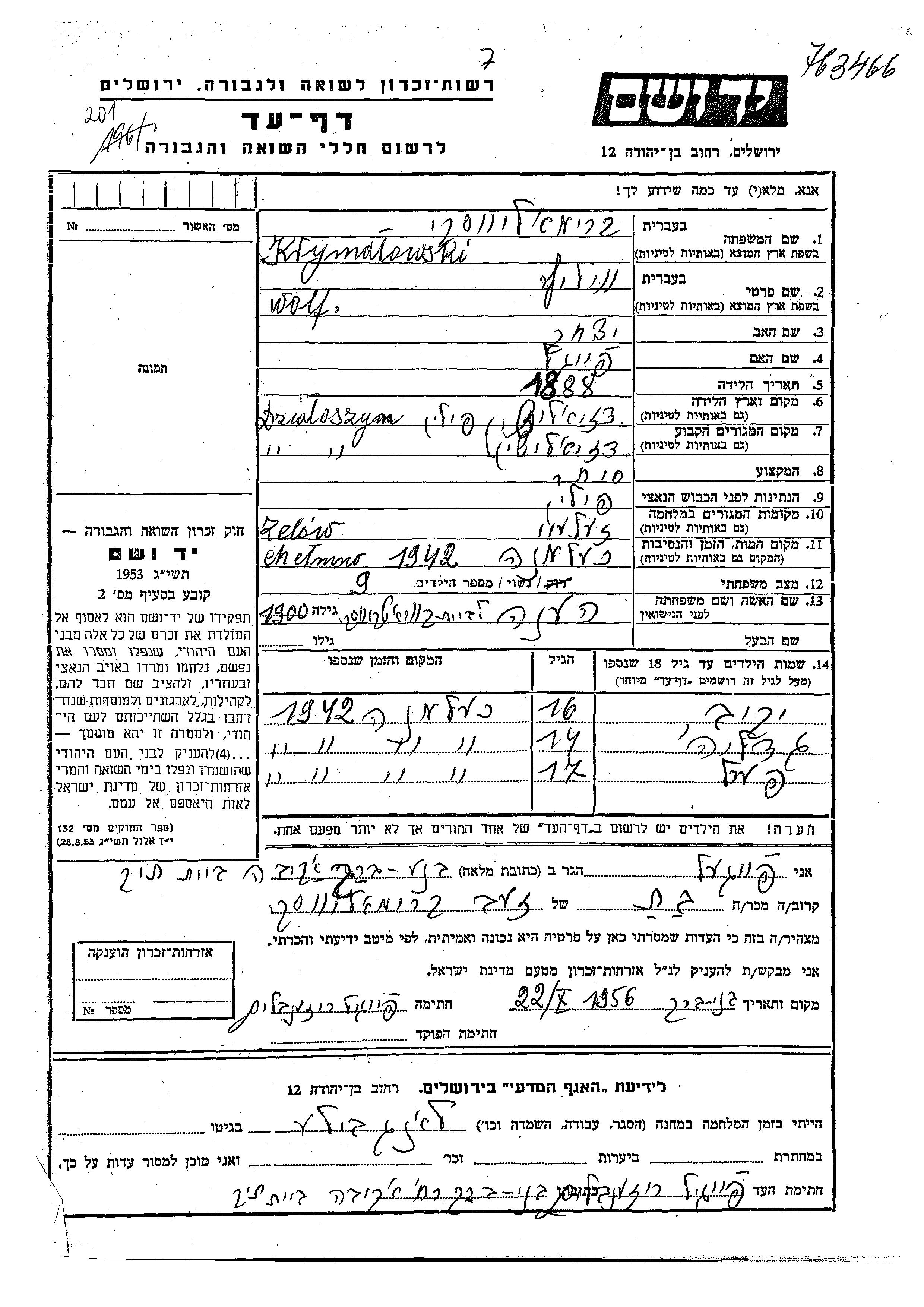 Яд Вашем - Листы свидетельских показаний Мемориального фонда