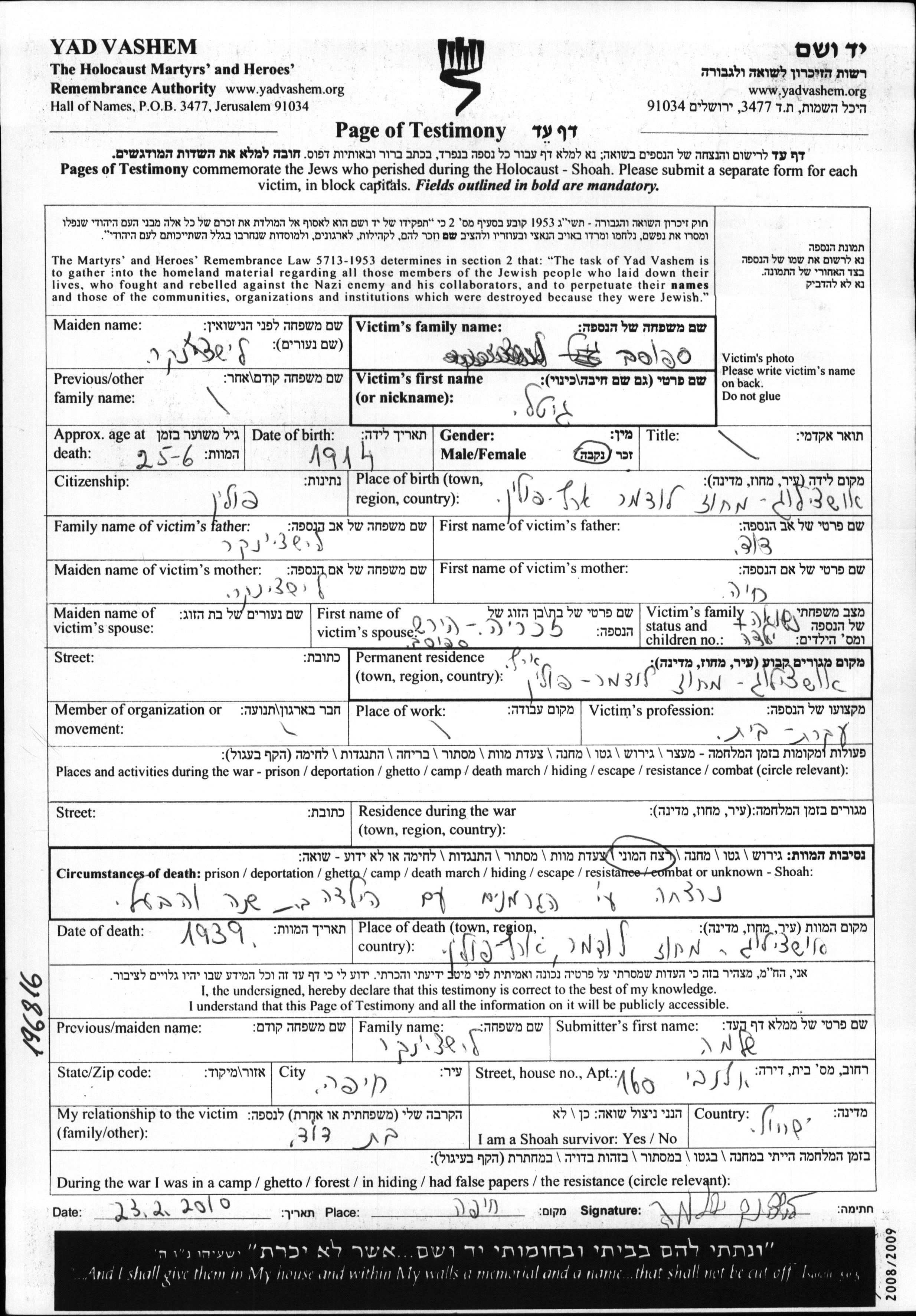 Яд Вашем - Листы свидетельских показаний Мемориального фонда