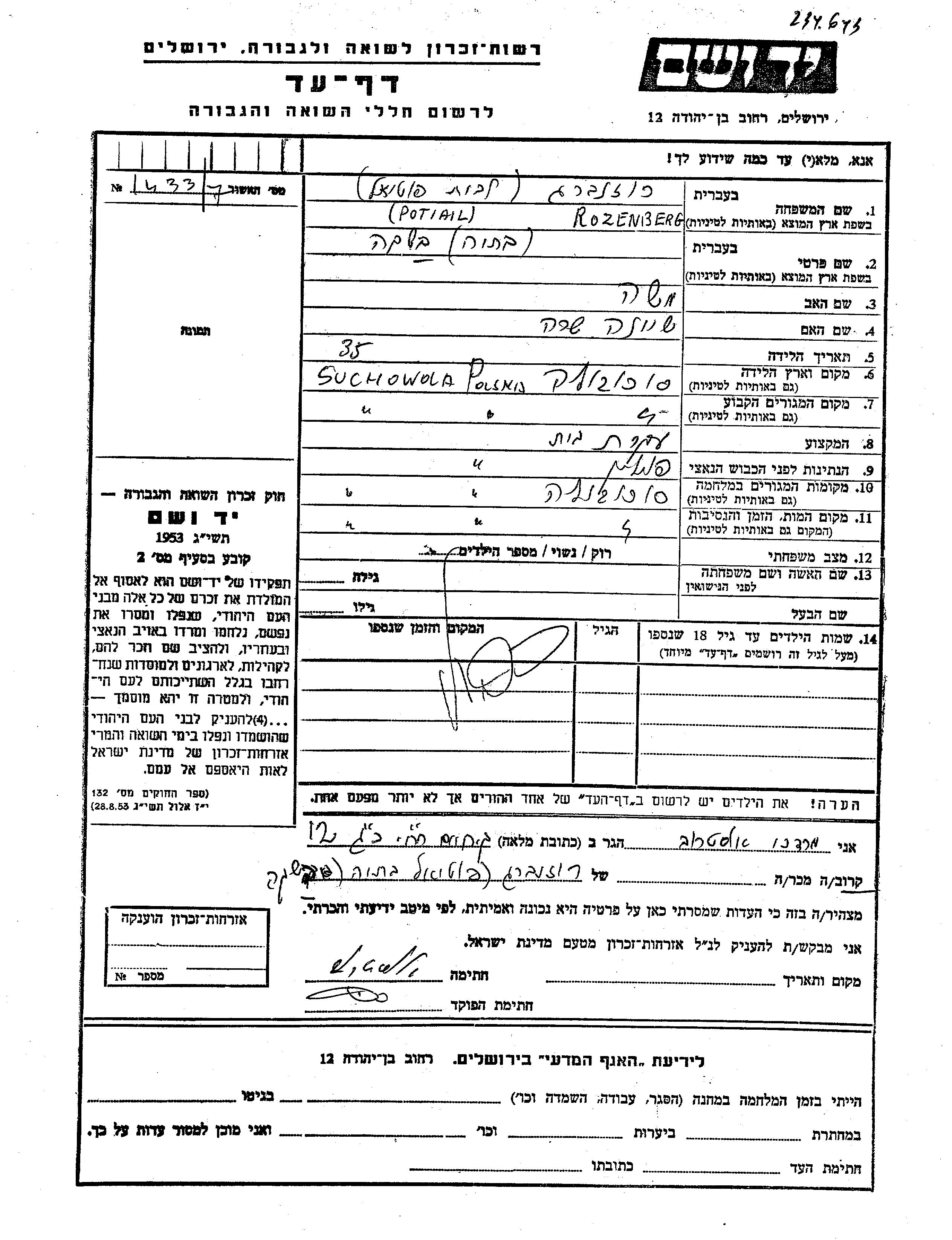 Розенберг Башка Суховоля, Польша Лист свидетельских показаний