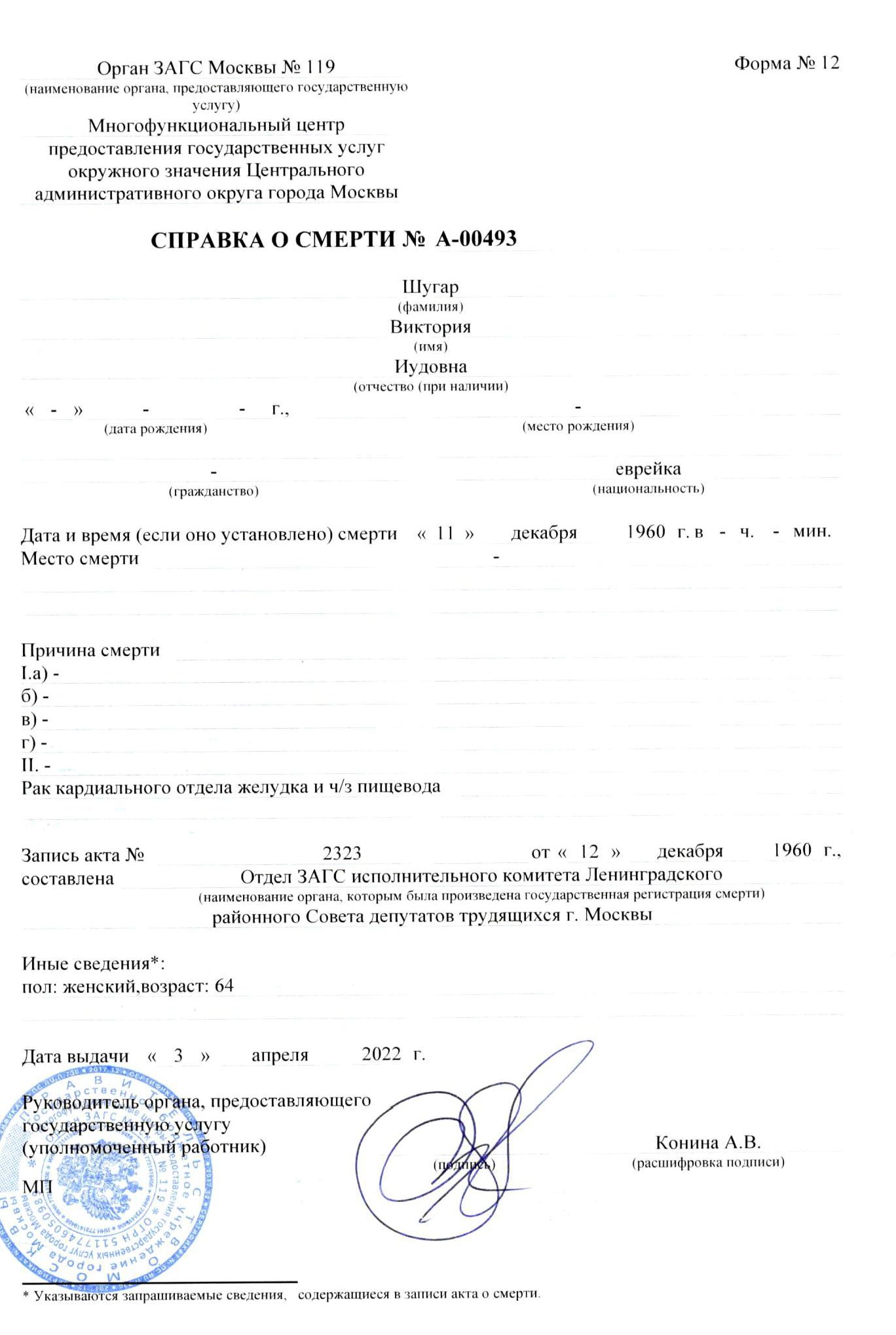 | Шугар | Виктория | 1896 | Москва, Россия (СССР) | Список эвакуированных |