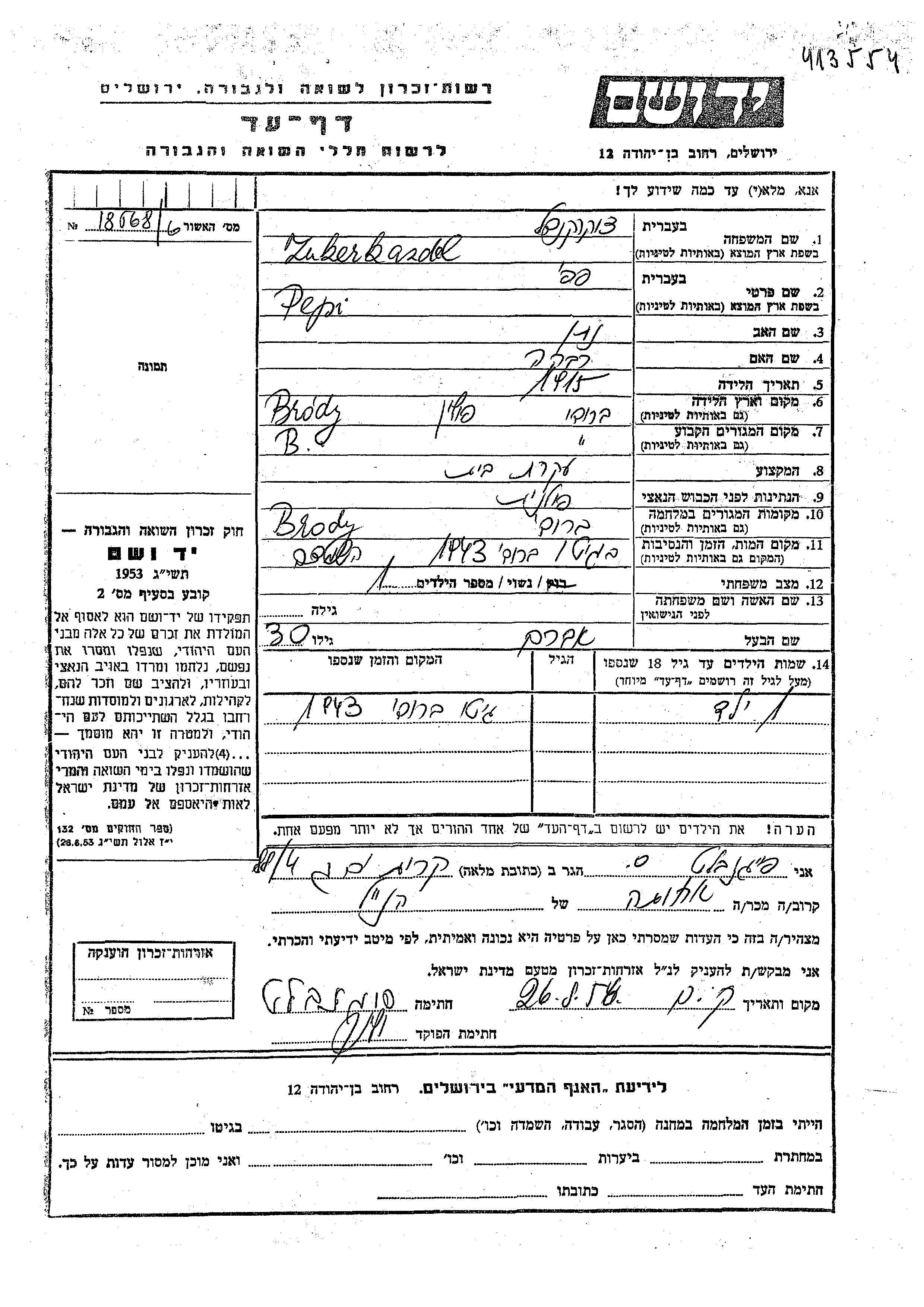 Пепи уничтоженa в период Шоа. место смерти: Броды, Польша в 1943.