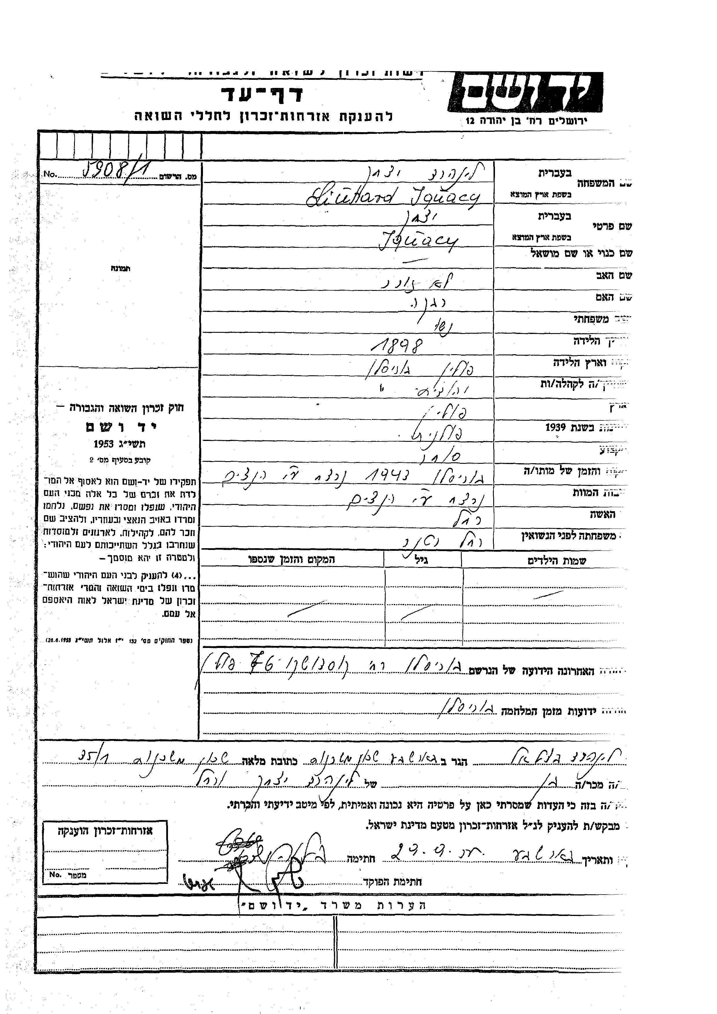Яд Вашем - Листы свидетельских показаний Мемориального фонда