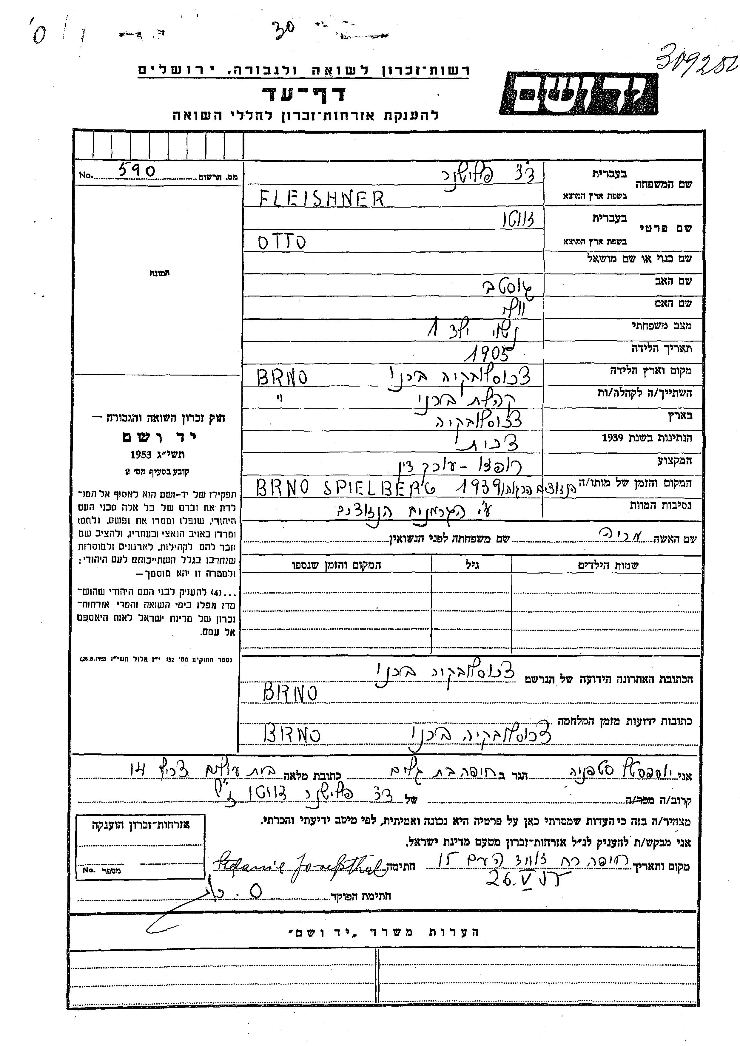 Др. Отто Флейшнер Плишнер, место рождения: Брно, Чехословакия. Отец: Густав, mать:Воли. Врач. Место во время войны: Брно, Чехословакия.