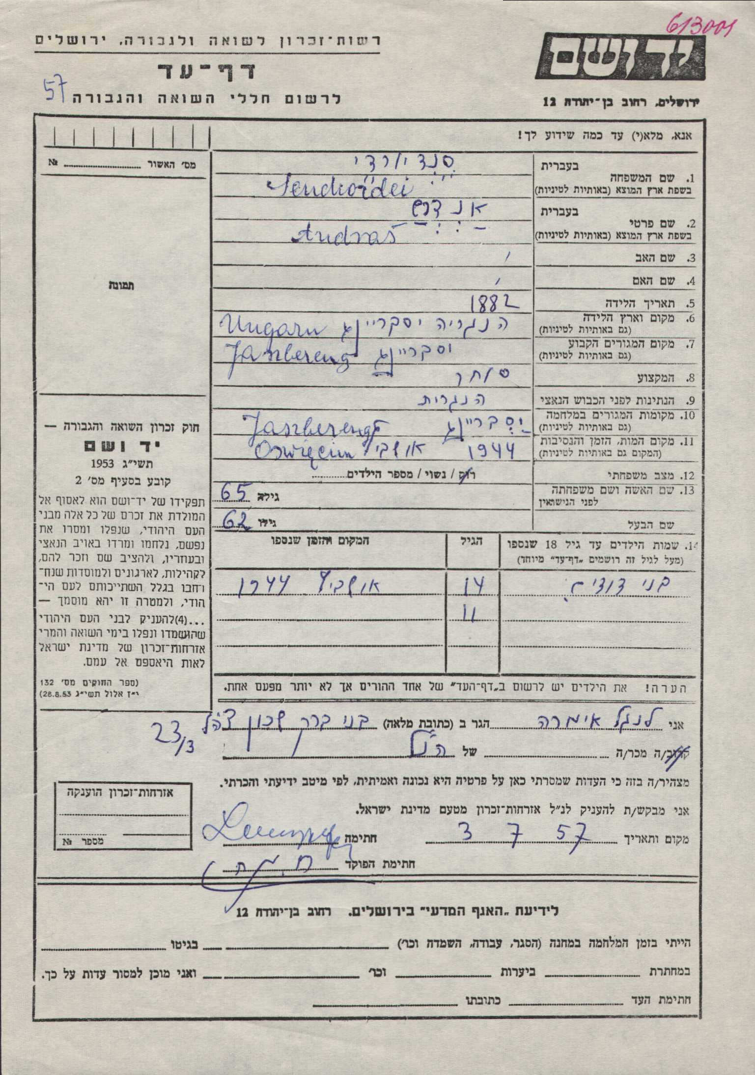 Sendiordei | Андраш | 1882 | Ясберень, Венгрия | Лист свидетельских показаний |