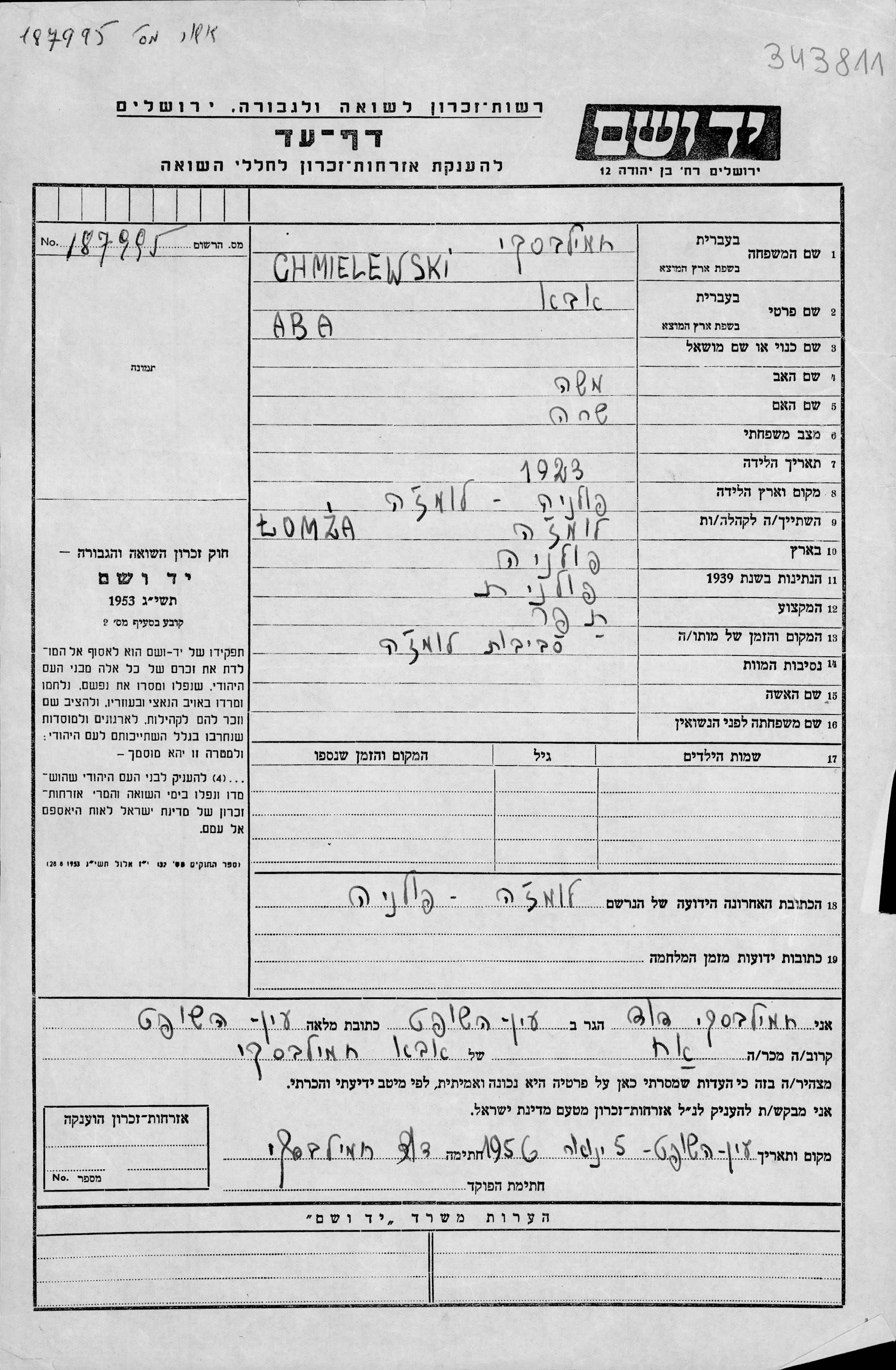 Хмилевски Аба 1923 Ломжа, Польша Лист свидетельских показаний