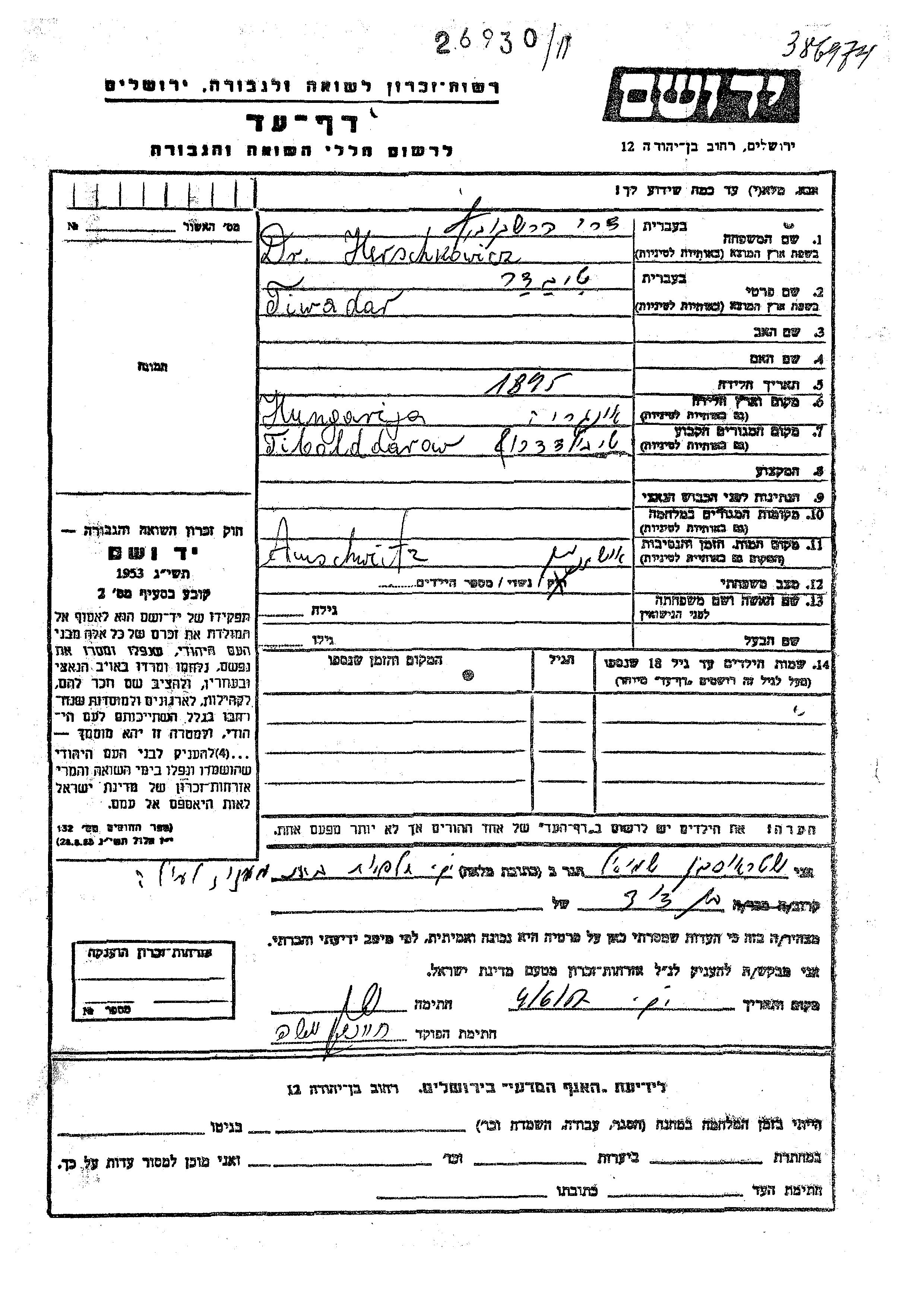 Яд Вашем - Листы свидетельских показаний Мемориального фонда