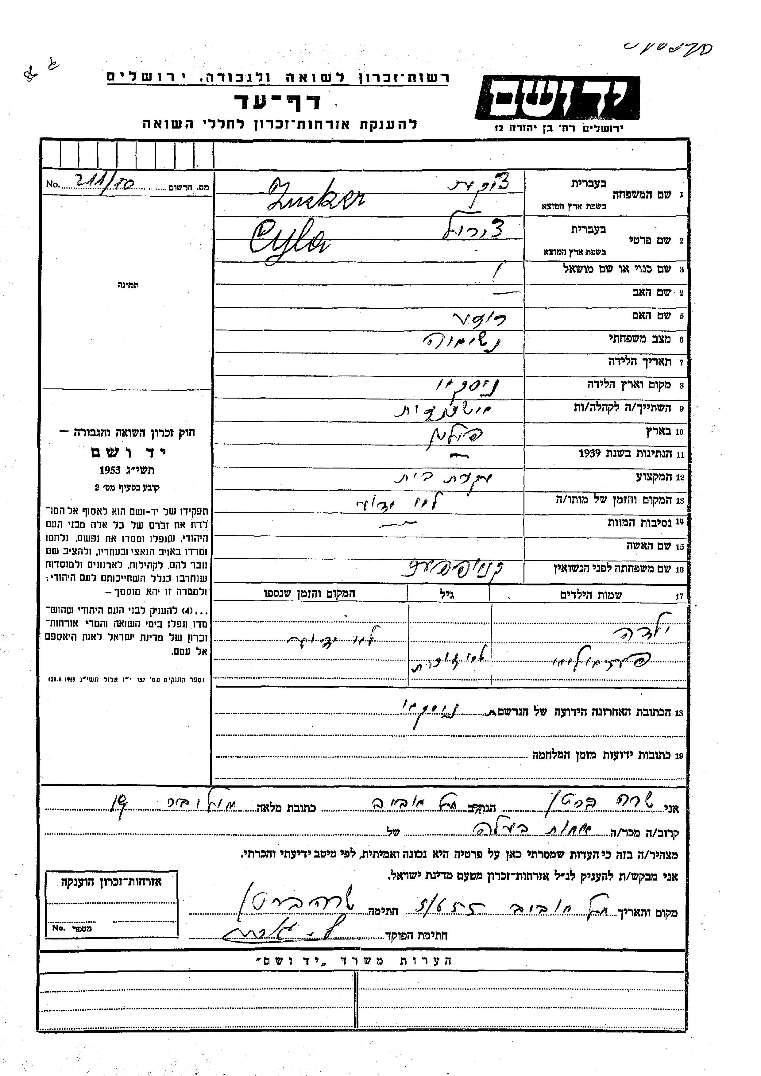 Яд Вашем - Листы свидетельских показаний Мемориального фонда