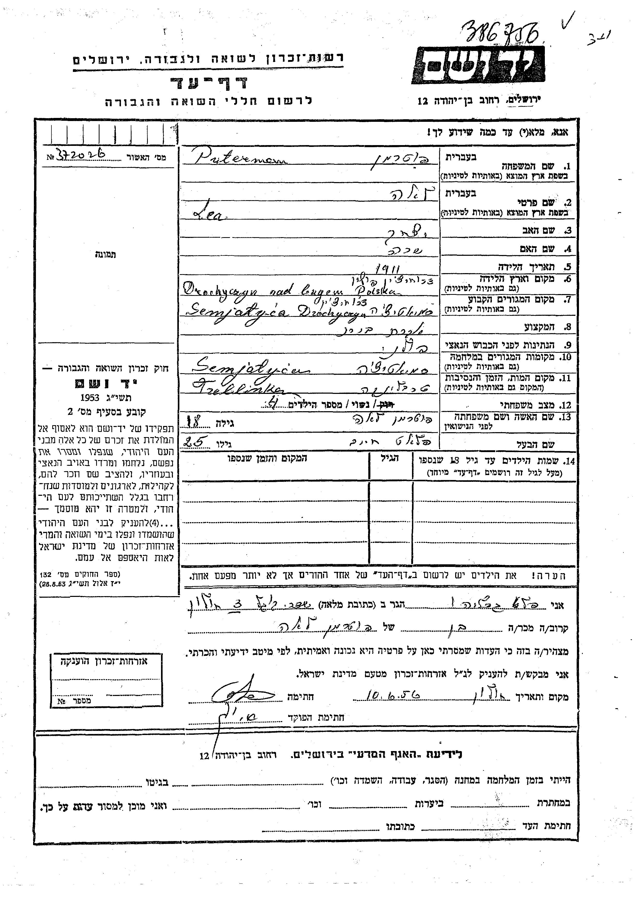 Яд Вашем - Листы свидетельских показаний Мемориального фонда