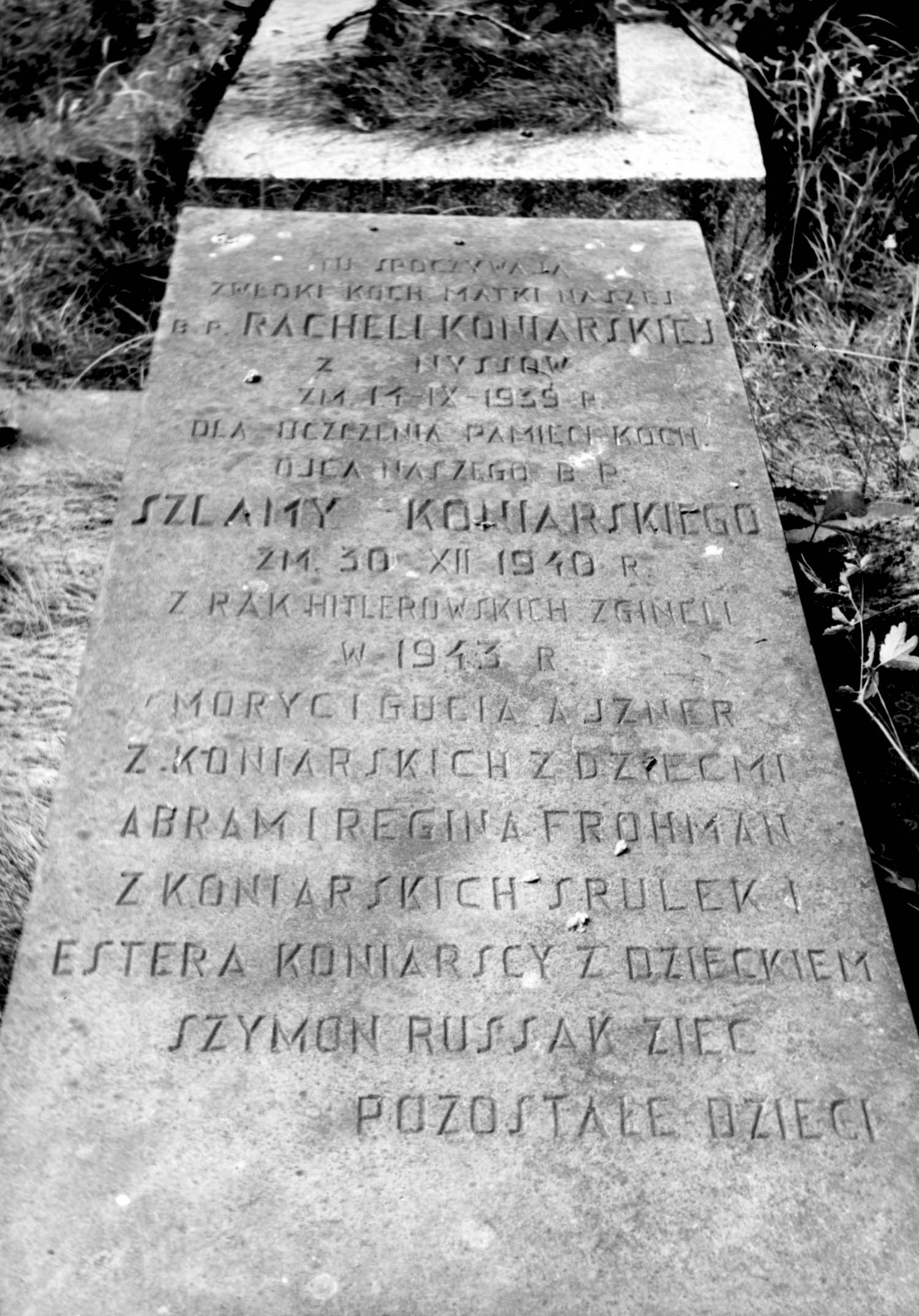 Рахель Конярски, девичья фамилия Нисс. Рахель уничтоженa в период Шоа. место смерти: место не указано в 14/09/1939.