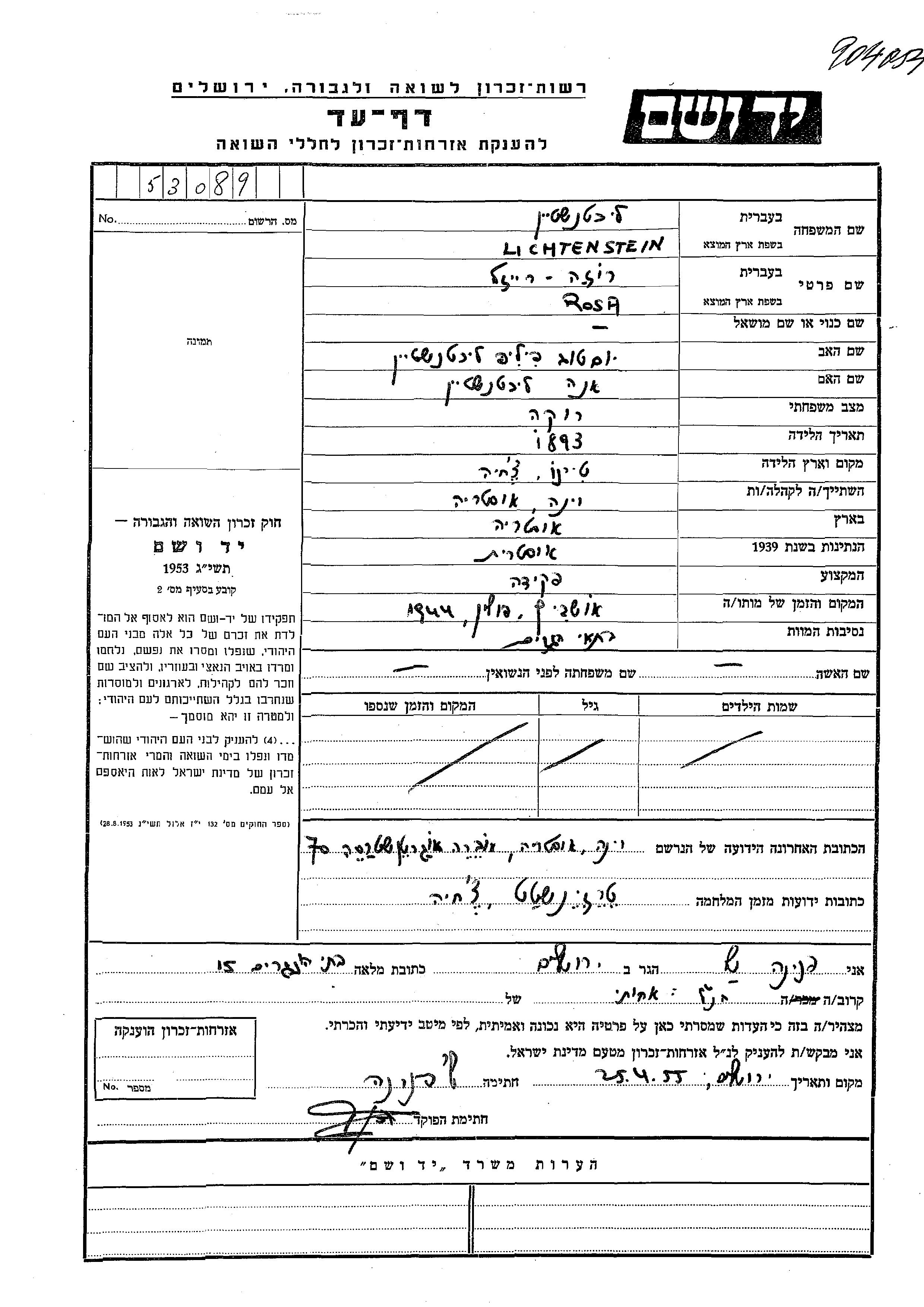 Яд Вашем - Листы свидетельских показаний Мемориального фонда