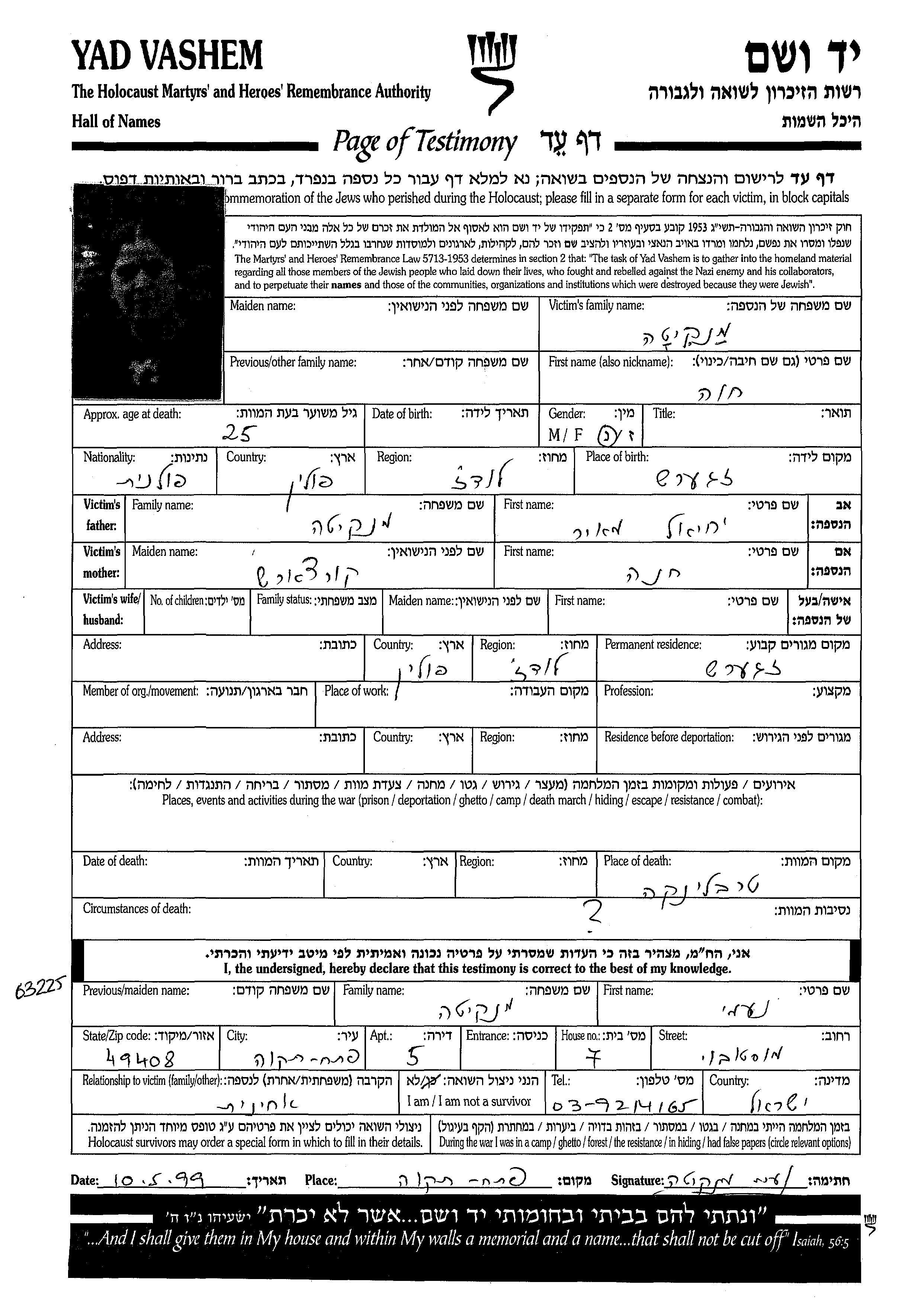 Поиск подателя Листа свидетельских показаний. Поиск по любому имени, включая уменьшительное или прозвище