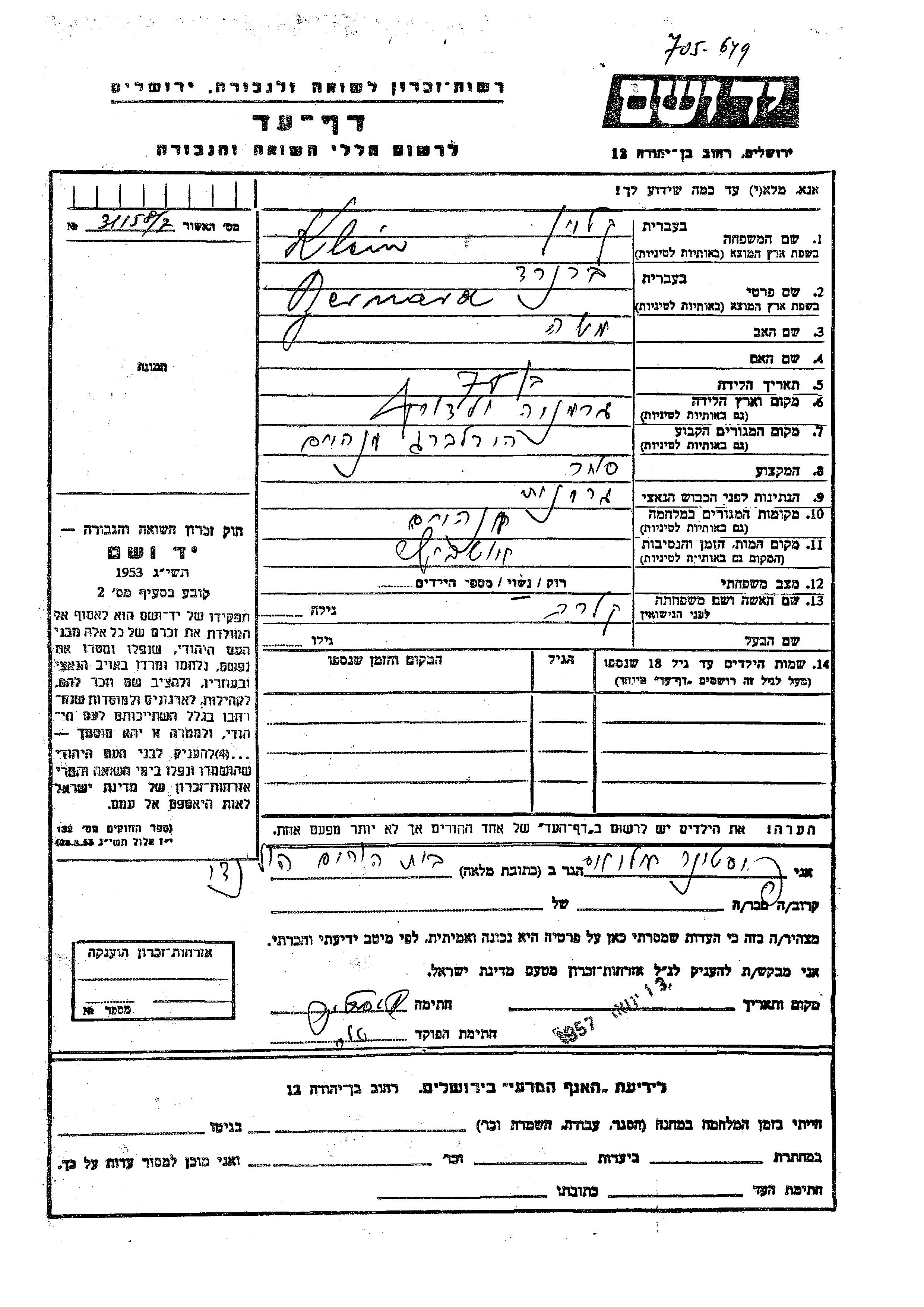 Яд Вашем - Листы свидетельских показаний Мемориального фонда