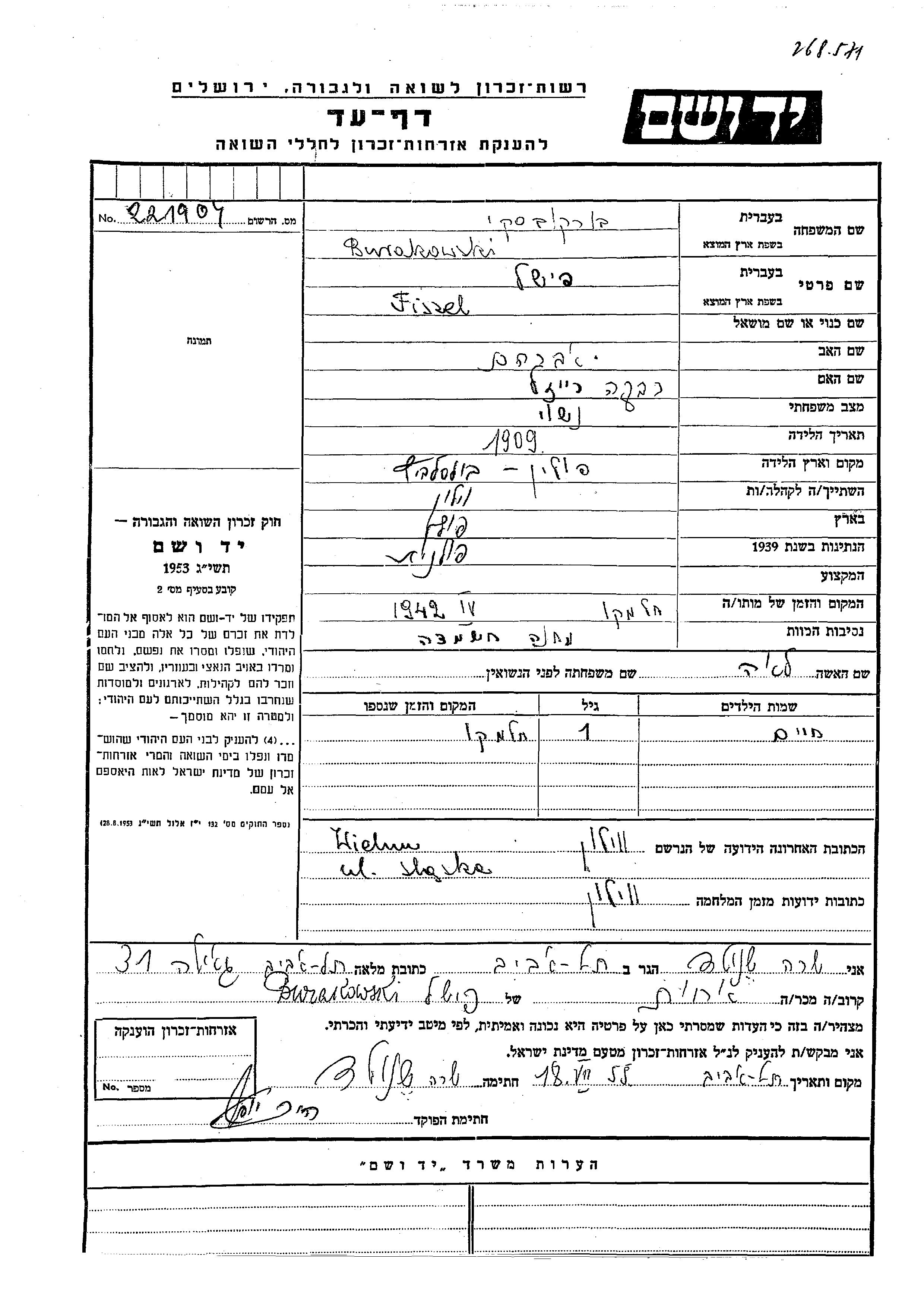 Бураковски Фишель 1909 Велюнь, Польша Лист свидетельских показаний
