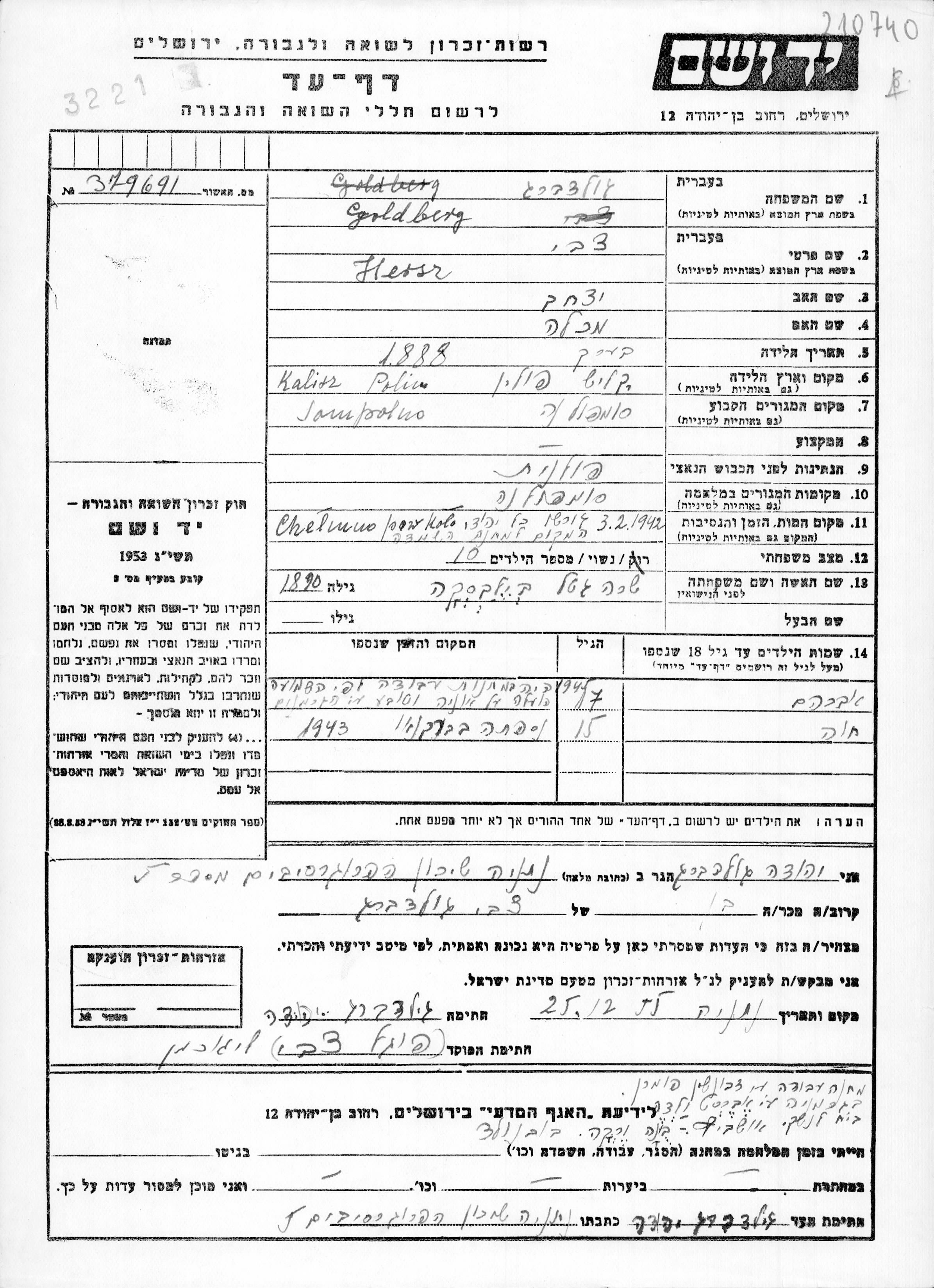 Яд Вашем - Листы свидетельских показаний Мемориального фонда