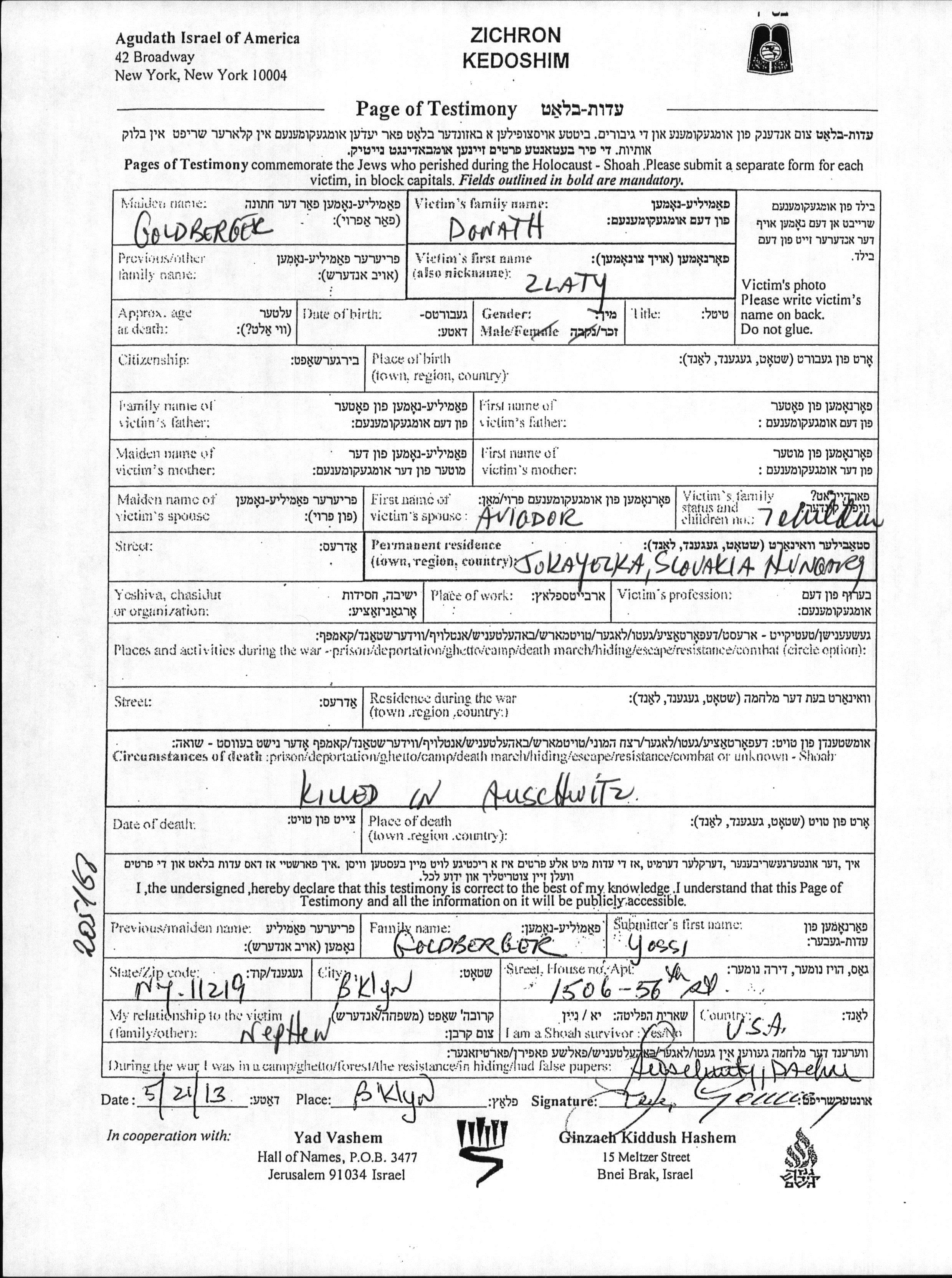 Поиск подателя Листа свидетельских показаний. Поиск по любому имени, включая уменьшительное или прозвище