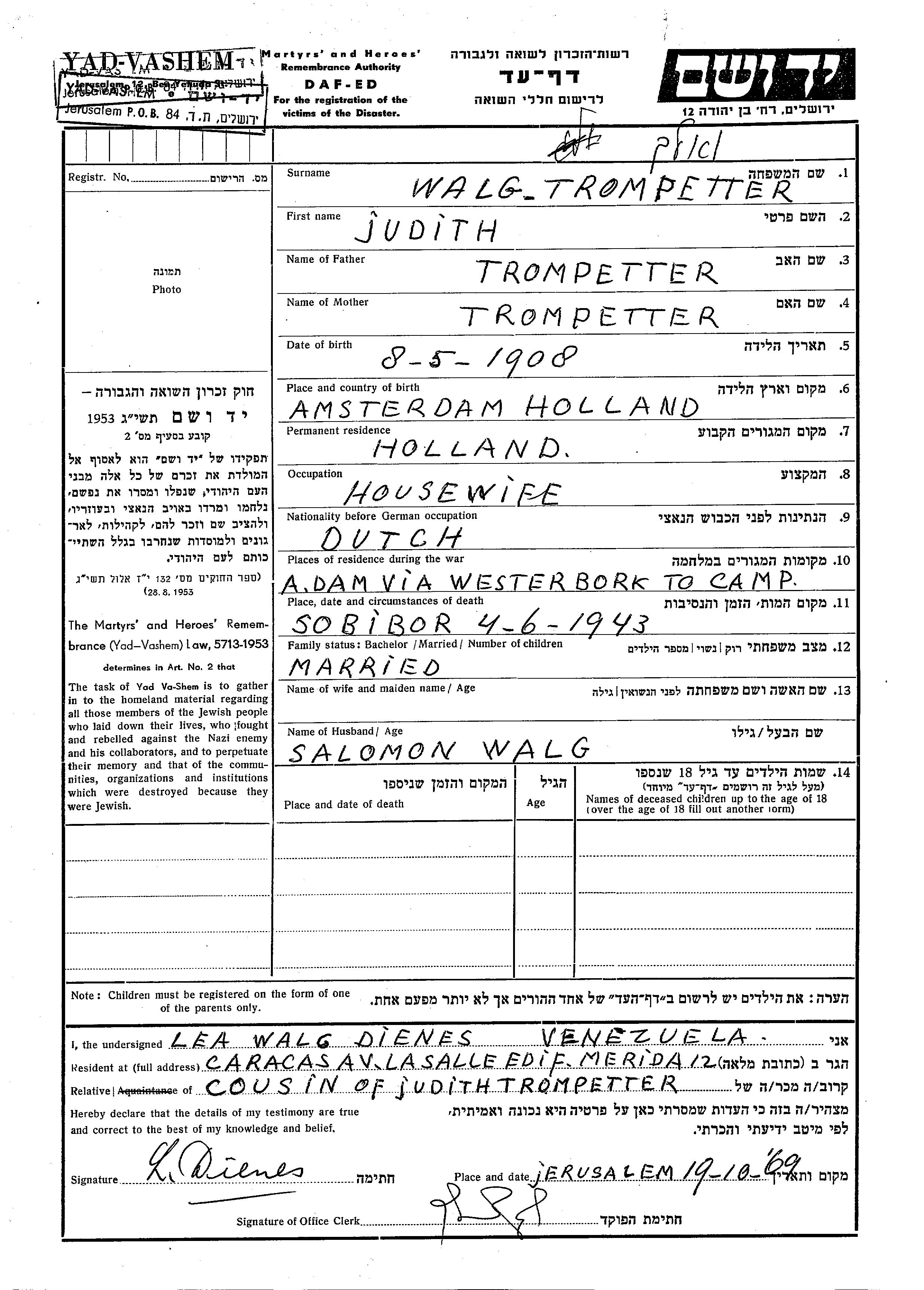 Валх Вальк | Юдит | 1908 | Нидерланды | Лист свидетельских показаний |