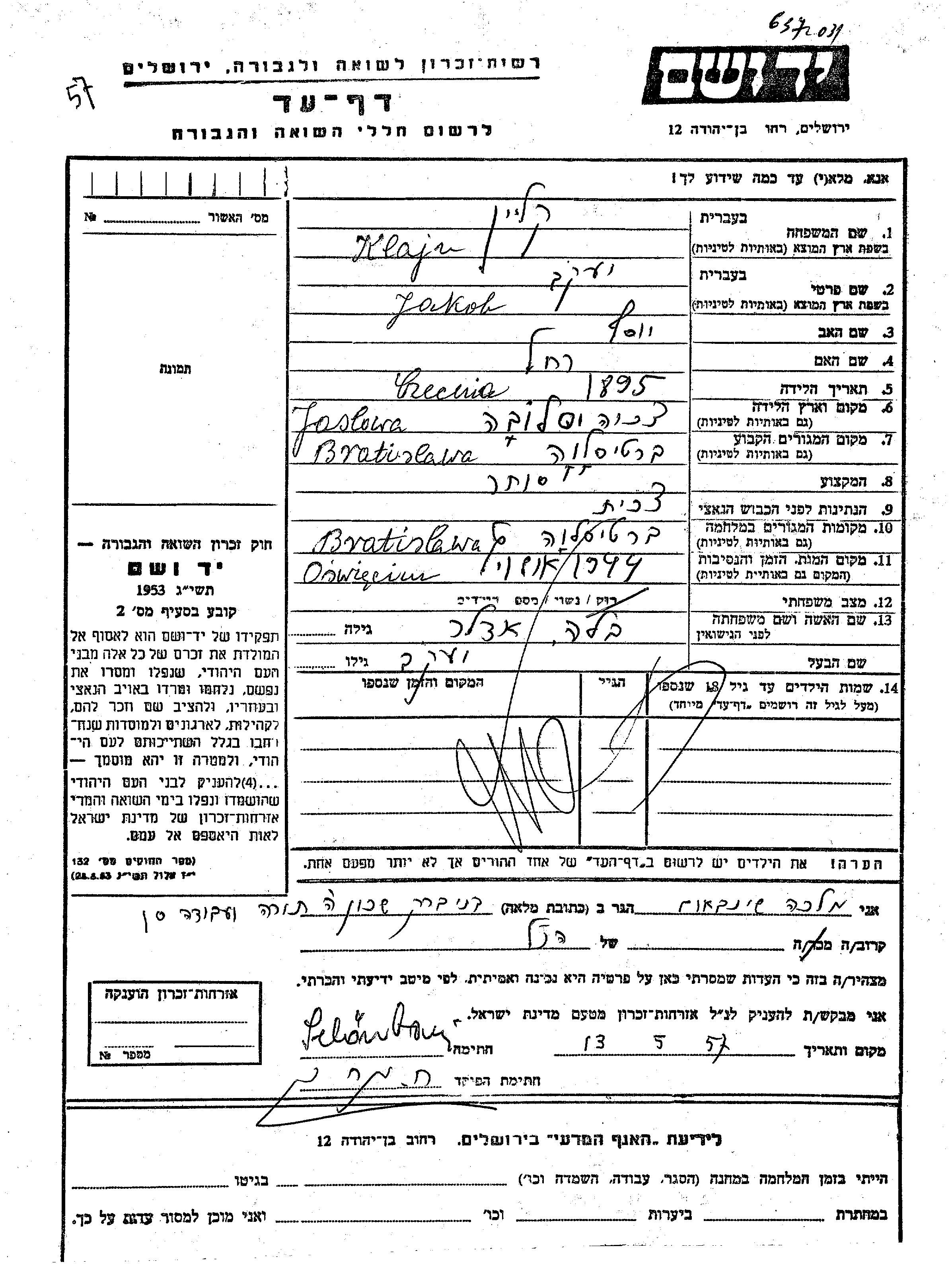 Яд Вашем - Листы свидетельских показаний Мемориального фонда