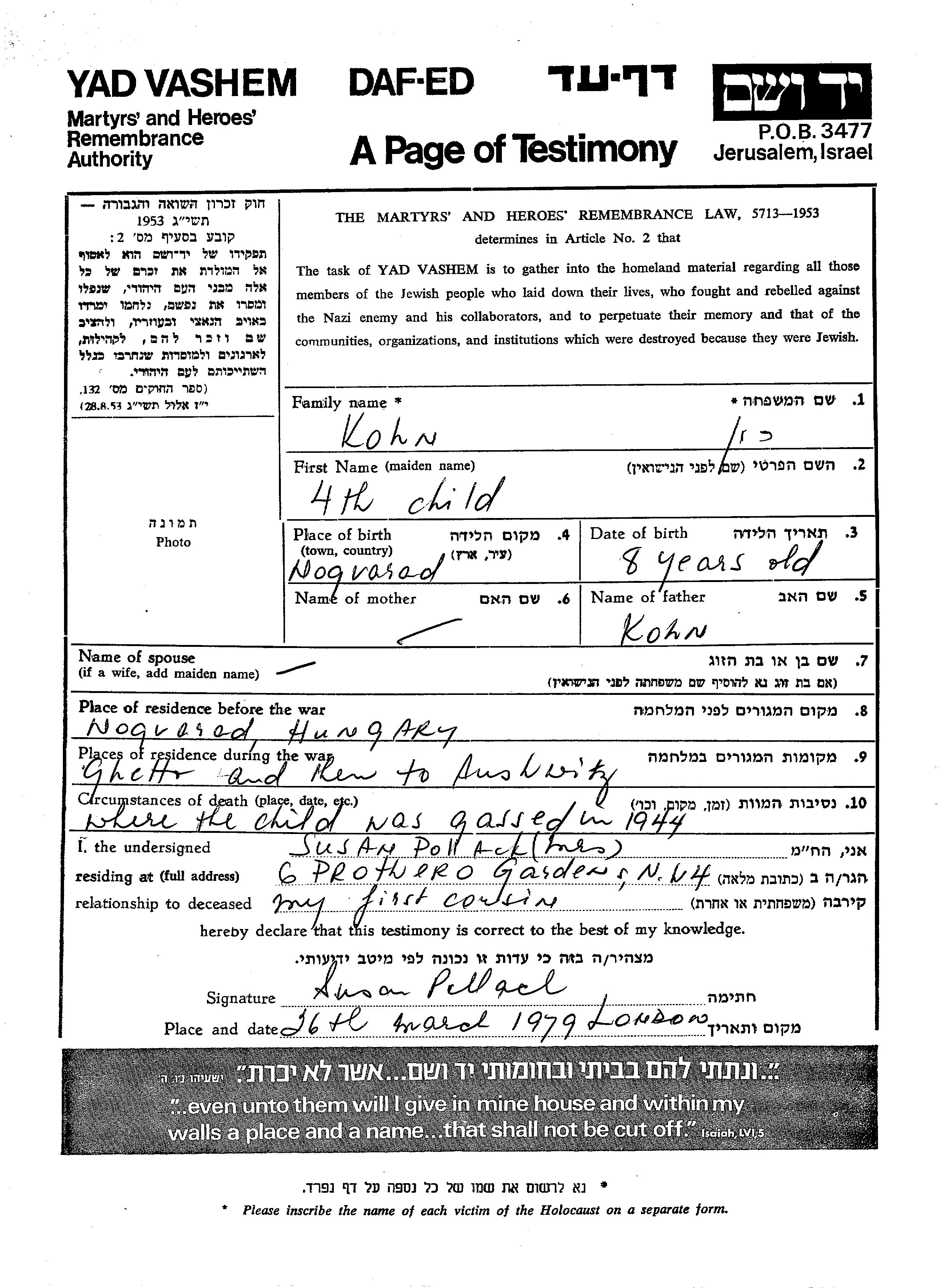 Кон Кун Имя неизвестно Надьварад, Румыния Лист свидетельских показаний