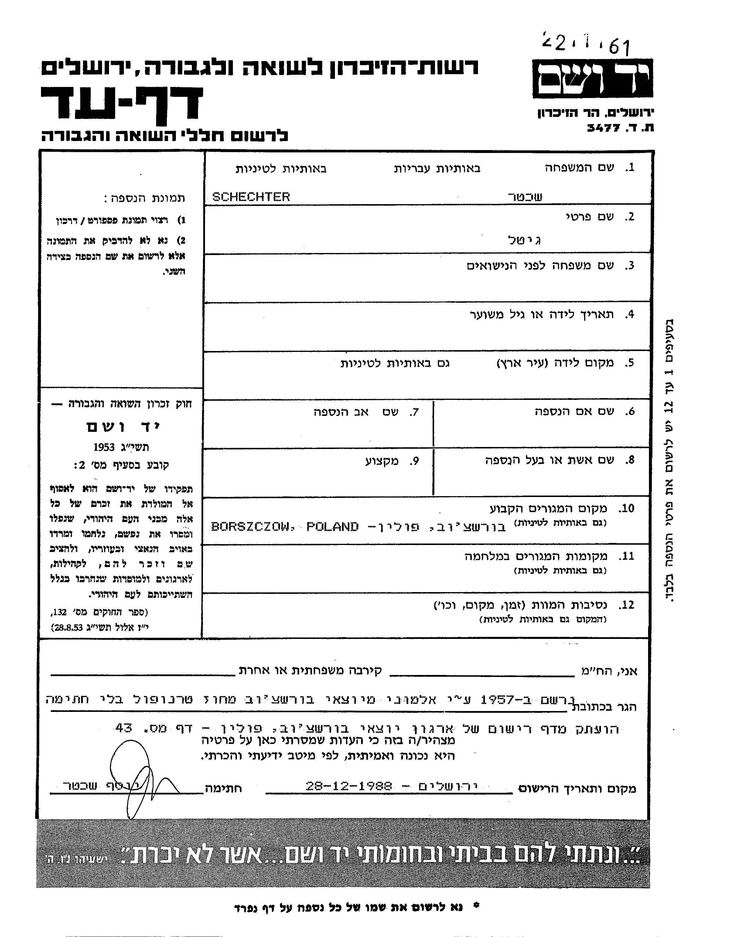 Яд Вашем - Листы свидетельских показаний Мемориального фонда