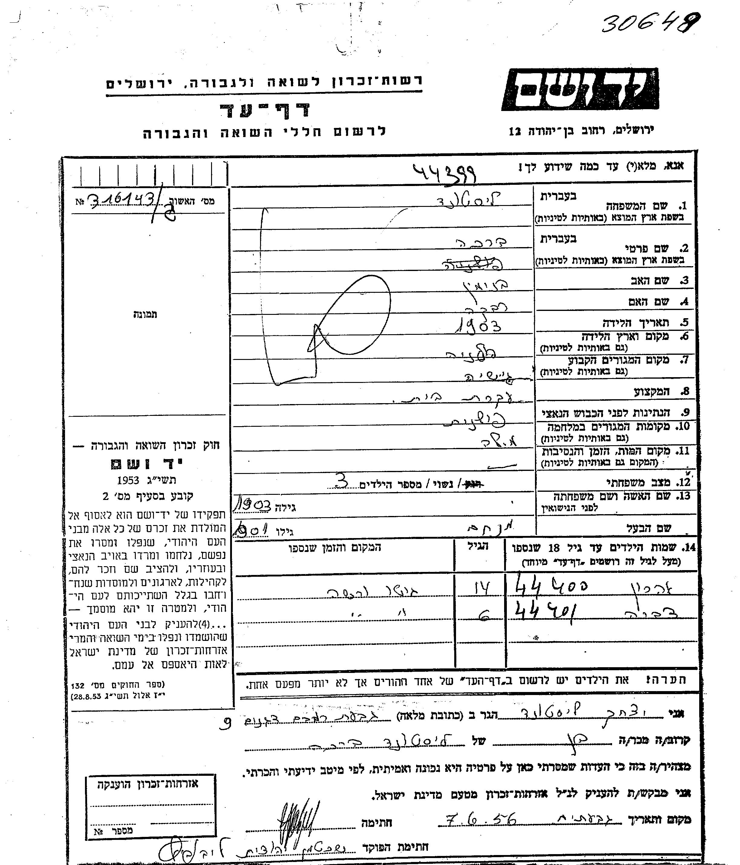 Яд Вашем - Листы свидетельских показаний Мемориального фонда